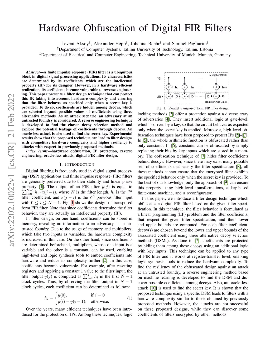 Hardware Obfuscation of Digital FIR Filters