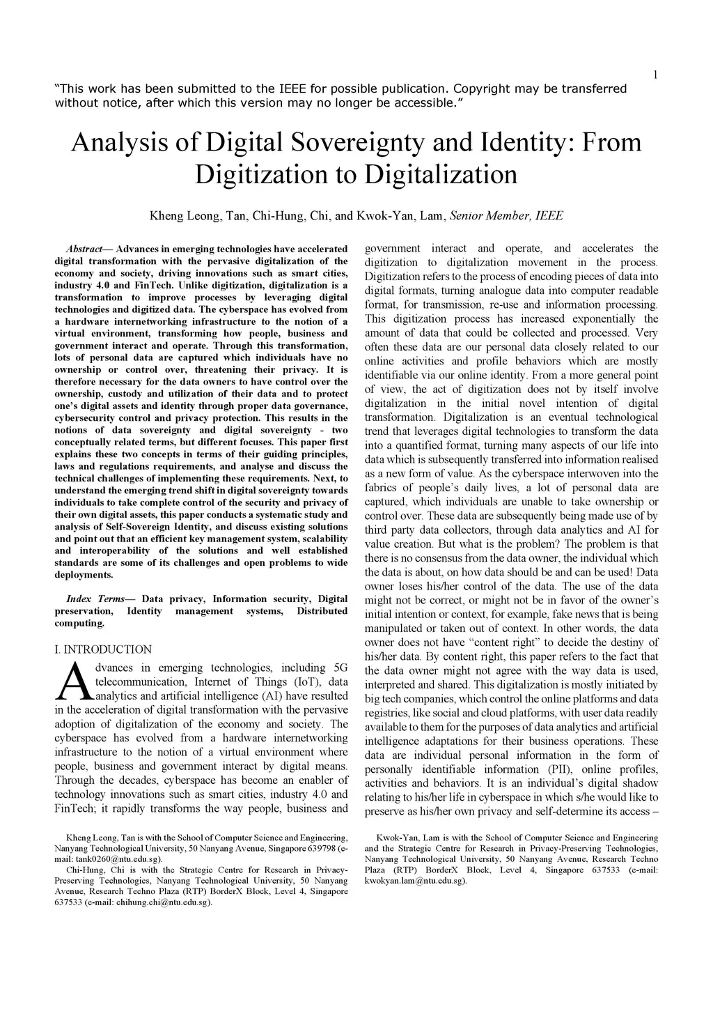 Analysis of Digital Sovereignty and Identity: From Digitization to