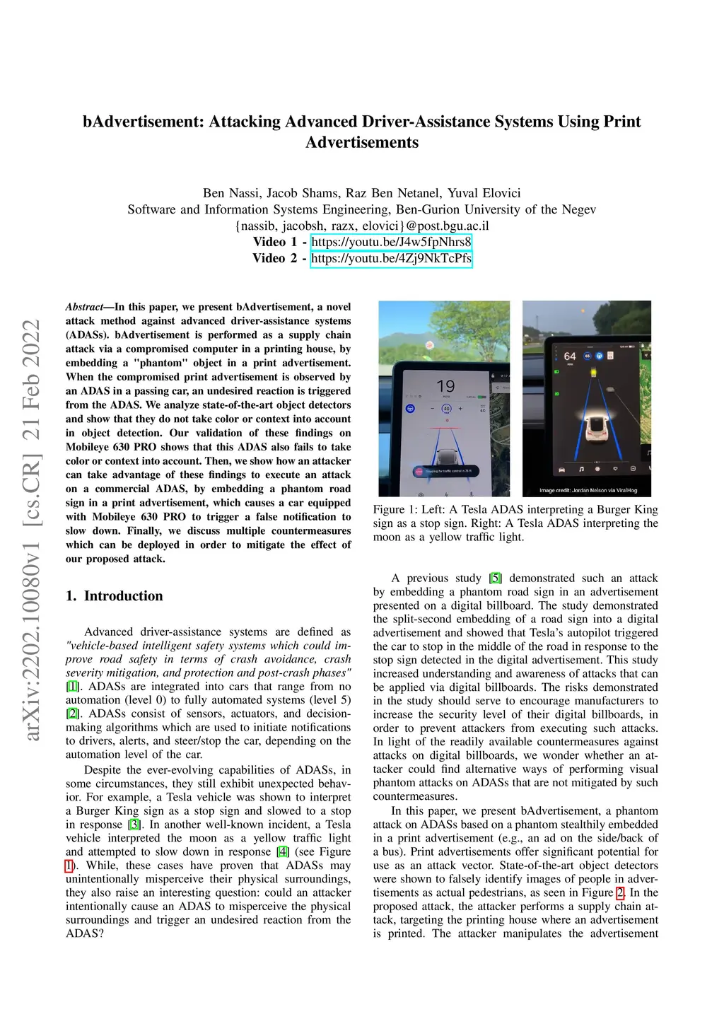 bAdvertisement: Attacking Advanced Driver-Assistance Systems Using Print