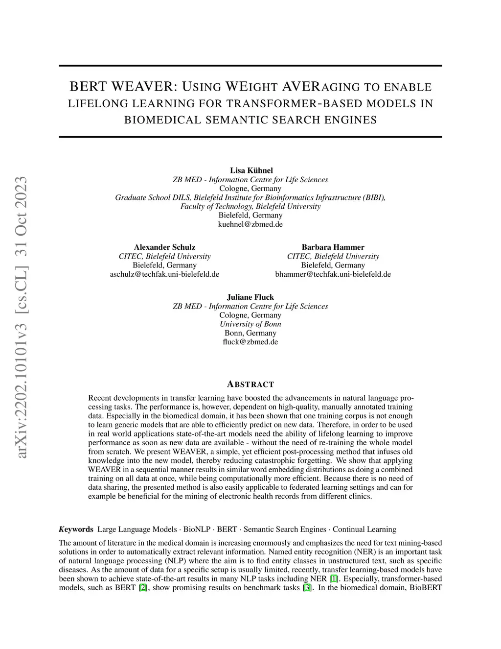 BERT WEAVER: Using WEight AVERaging to enable lifelong learning for