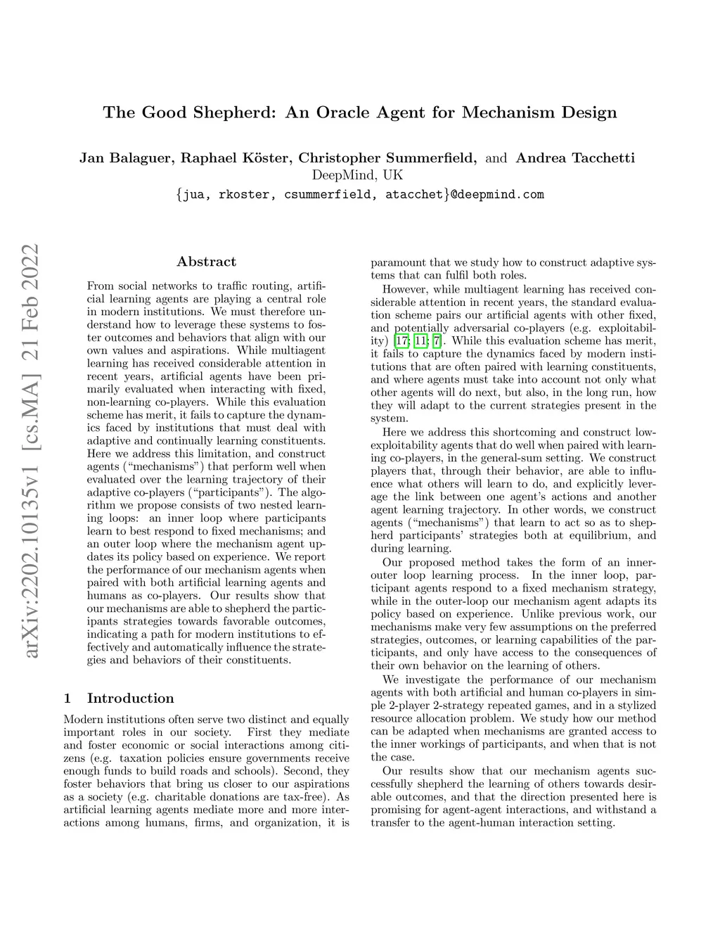 From social networks to traffic routing, artificial learning agents are playing a central role in modern institutions. We must therefore understand how to leverage these systems to foster outcomes and behaviors that align with our own values and aspirations. While multiagent learning has received considerable attention in recent years, artificial agents have been primarily evaluated when interacting with fixed, non-learning co-players. While this evaluation scheme has merit, it fails to capture the dynamics faced by institutions that must deal with adaptive and continually learning constituents. Here we address this limitation, and construct agents ("mechanisms") that perform well when evaluated over the learning trajectory of their adaptive co-players ("participants"). The algorithm we propose consists of two nested learning loops: an inner loop where participants learn to best respond to fixed mechanisms; and an outer loop where the mechanism agent updates its policy based on experience. We report the performance of our mechanism agents when paired with both artificial learning agents and humans as co-players. Our results show that our mechanisms are able to shepherd the participants strategies towards favorable outcomes, indicating a path for modern institutions to effectively and automatically influence the strategies and behaviors of their constituents.