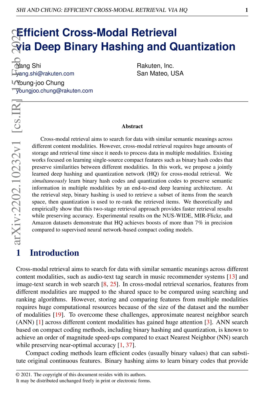 Efficient Cross-Modal Retrieval via Deep Binary Hashing and Quantization