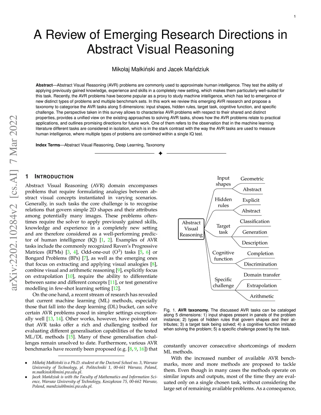 A Review of Emerging Research Directions in Abstract Visual Reasoning