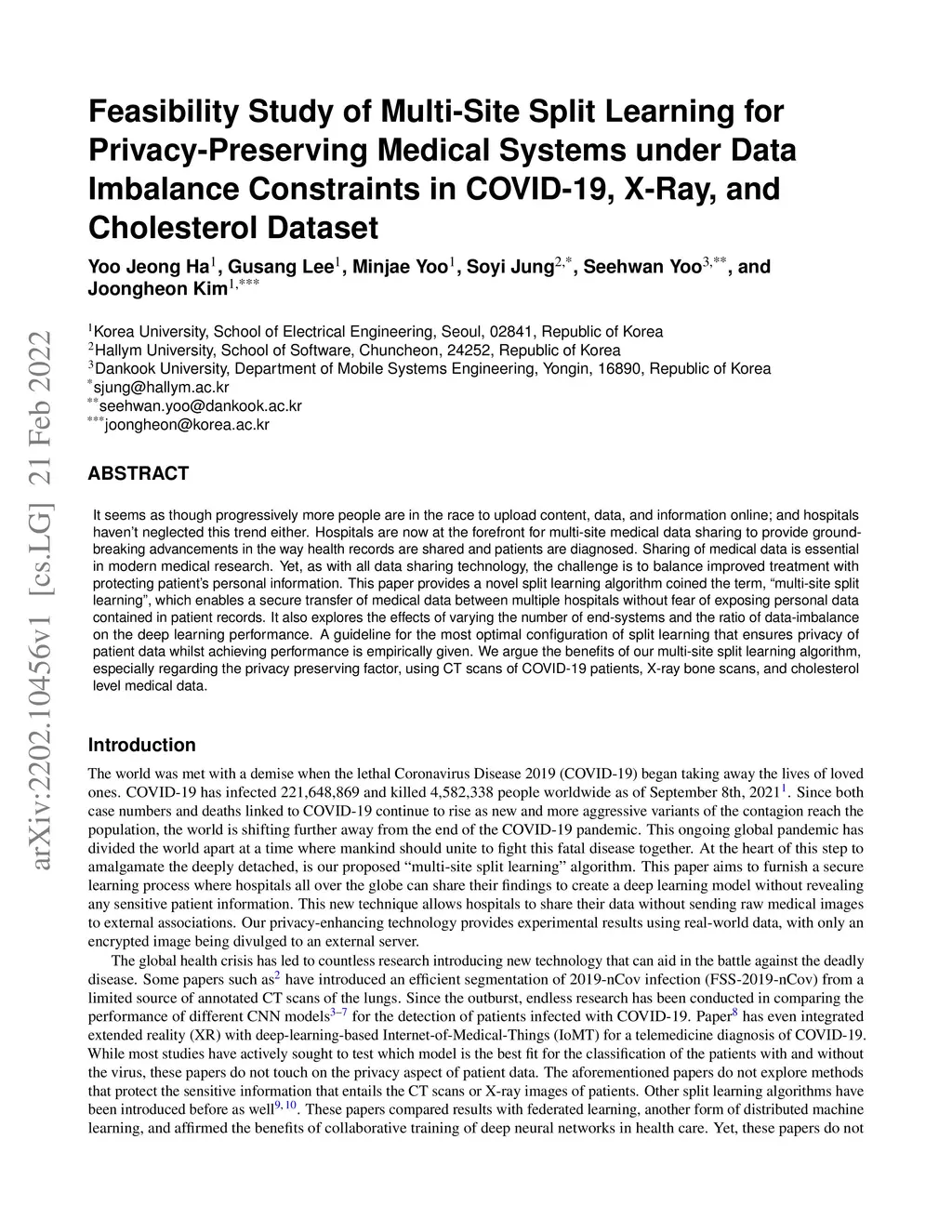 Feasibility Study of Multi-Site Split Learning for Privacy-Preserving