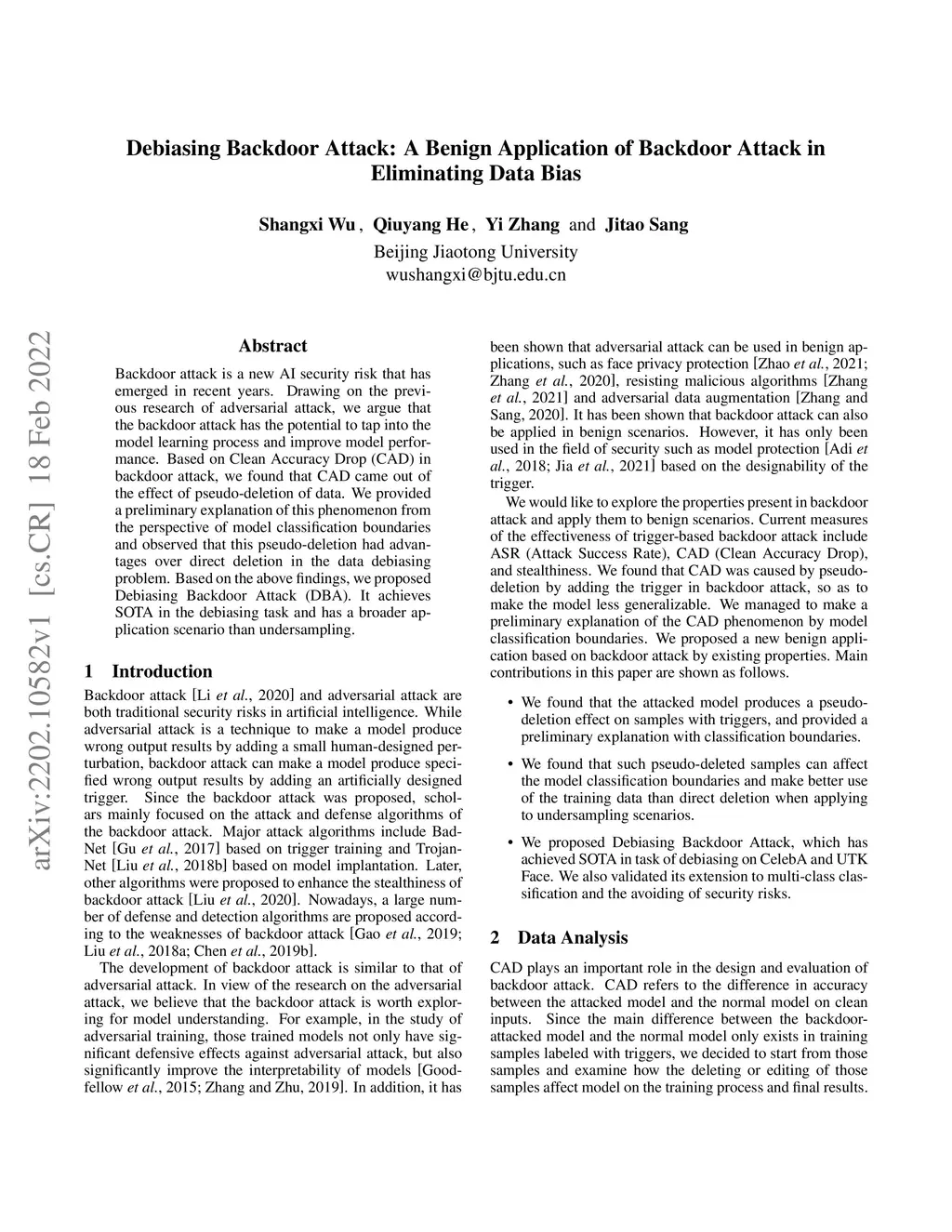 Backdoor attack is a new AI security risk that has emerged in recent years. Drawing on the previous research of adversarial attack, we argue that the backdoor attack has the potential to tap into the model learning process and improve model performance. Based on Clean Accuracy Drop (CAD) in backdoor attack, we found that CAD came out of the effect of pseudo-deletion of data. We provided a preliminary explanation of this phenomenon from the perspective of model classification boundaries and observed that this pseudo-deletion had advantages over direct deletion in the data debiasing problem. Based on the above findings, we proposed Debiasing Backdoor Attack (DBA). It achieves SOTA in the debiasing task and has a broader application scenario than undersampling.