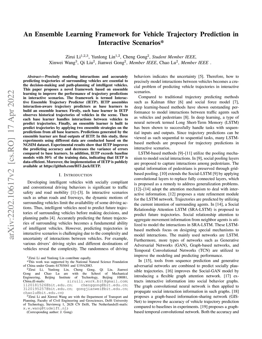 An Ensemble Learning Framework for Vehicle Trajectory Prediction in