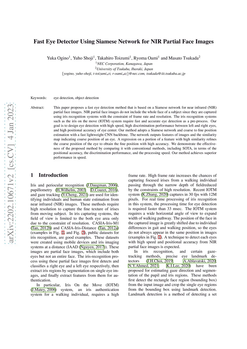 Fast Eye Detector Using Siamese Network for NIR Partial Face Images