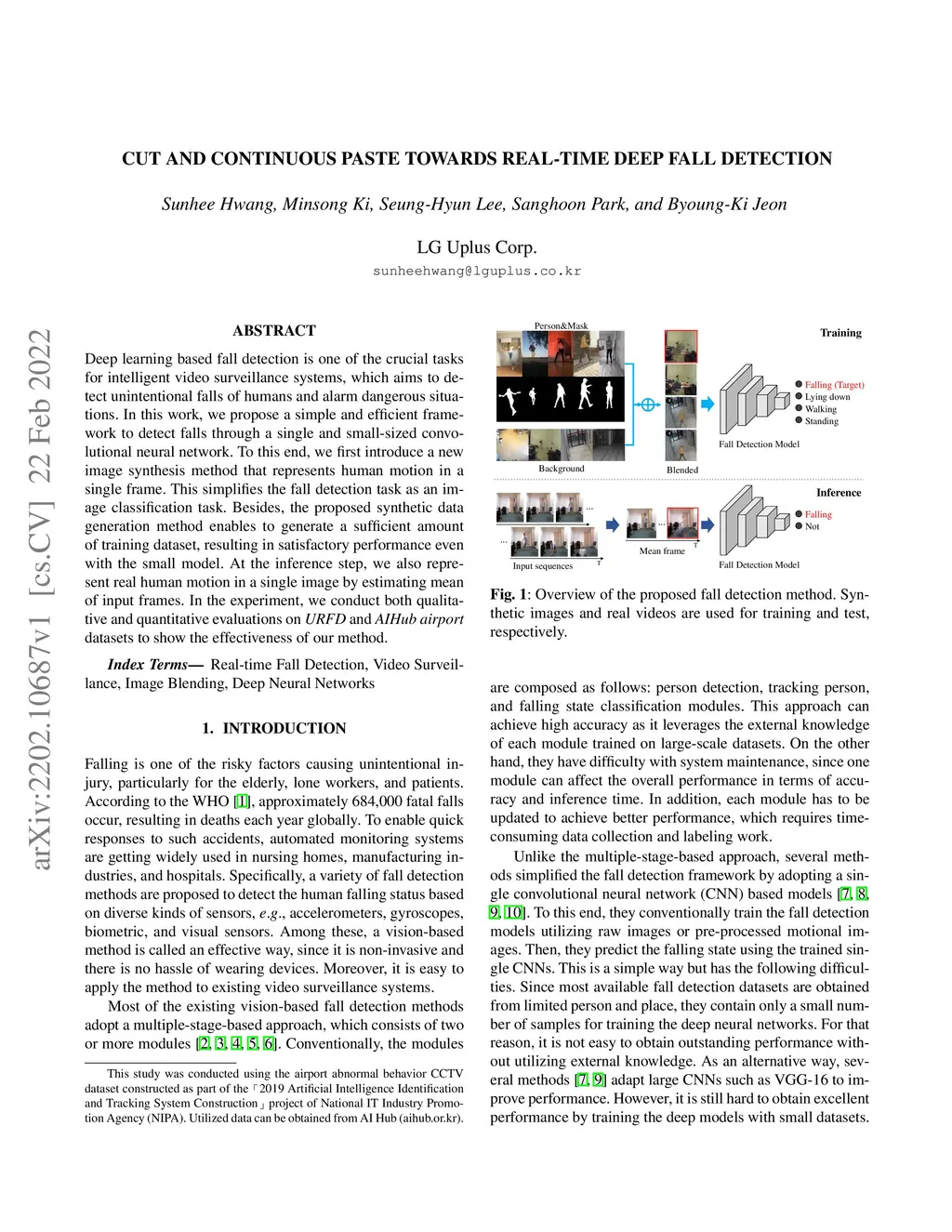 Cut and Continuous Paste towards Real-time Deep Fall Detection