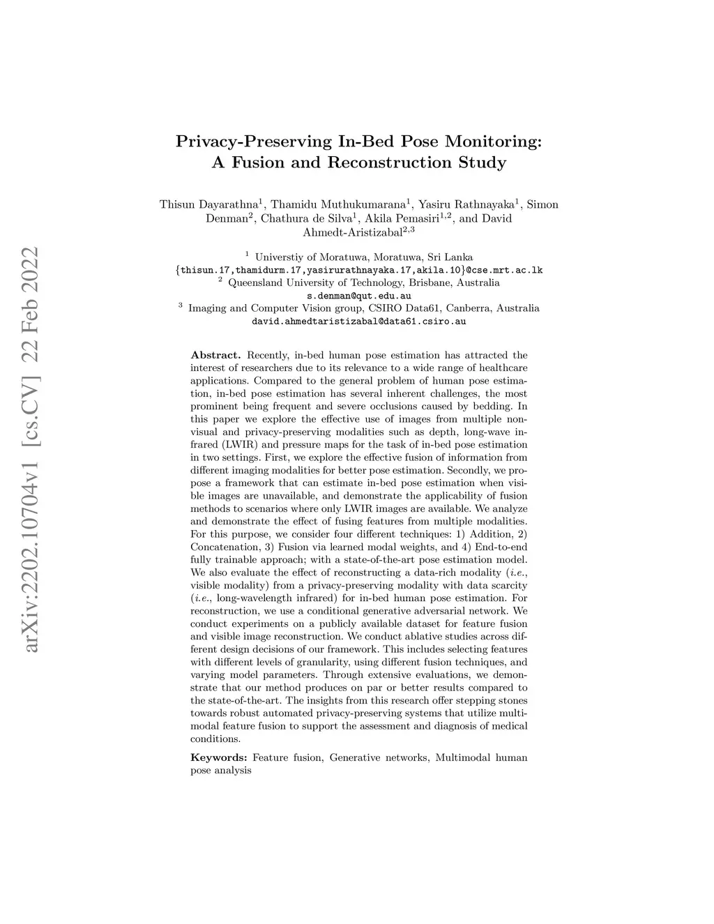 Privacy-Preserving In-Bed Pose Monitoring: A Fusion and Reconstruction