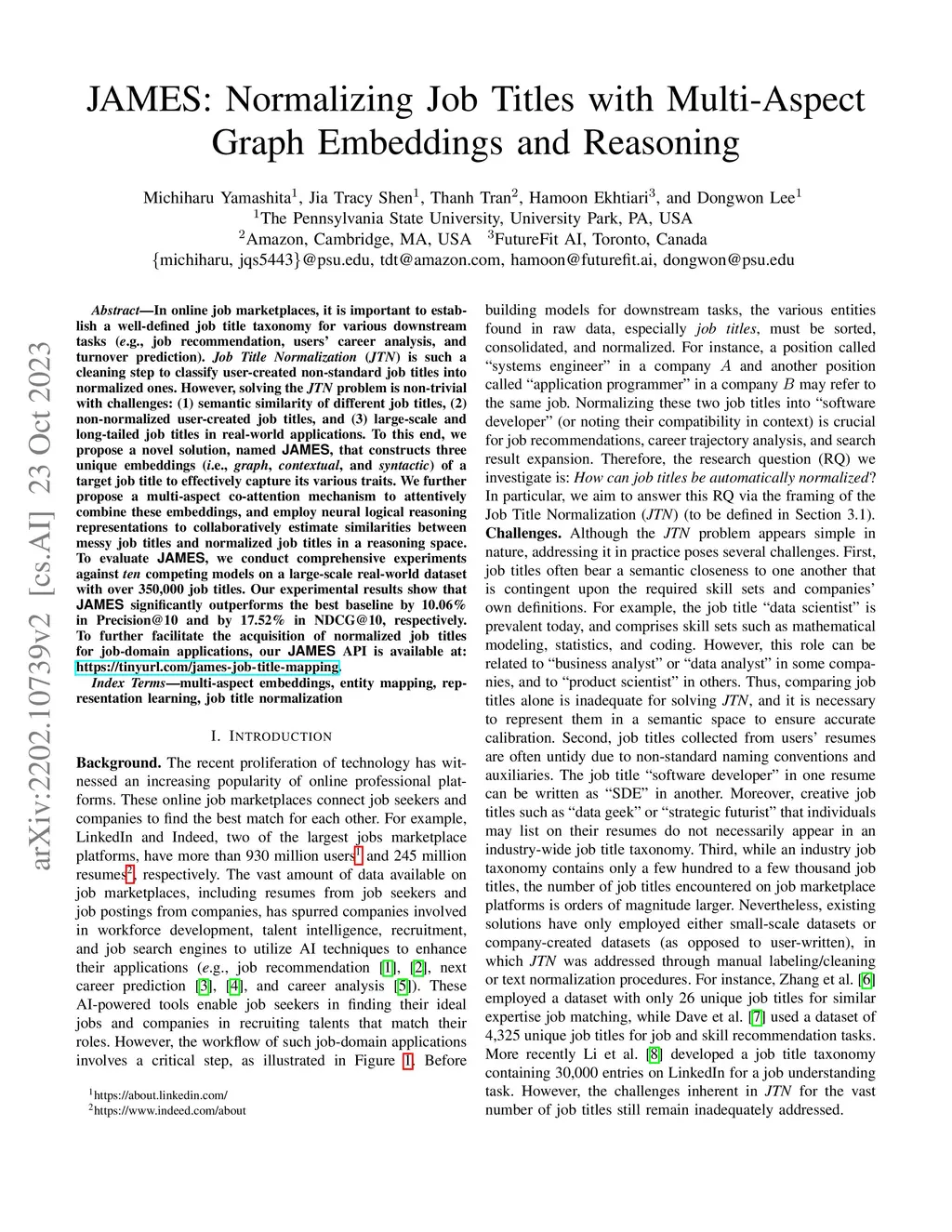 JAMES: Normalizing Job Titles with Multi-Aspect Graph Embeddings and