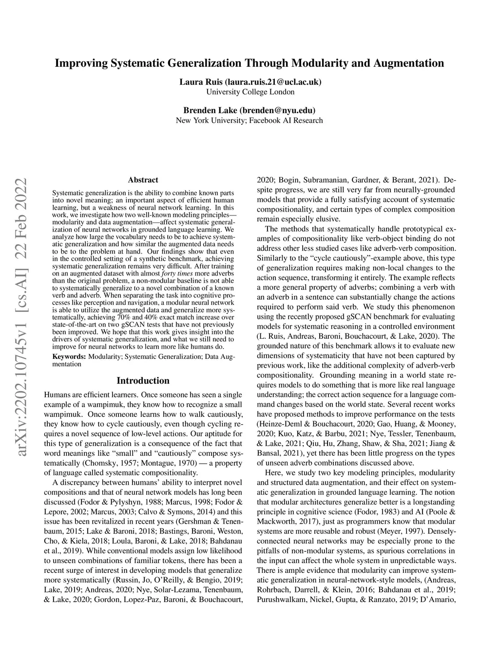 Improving Systematic Generalization Through Modularity and Augmentation