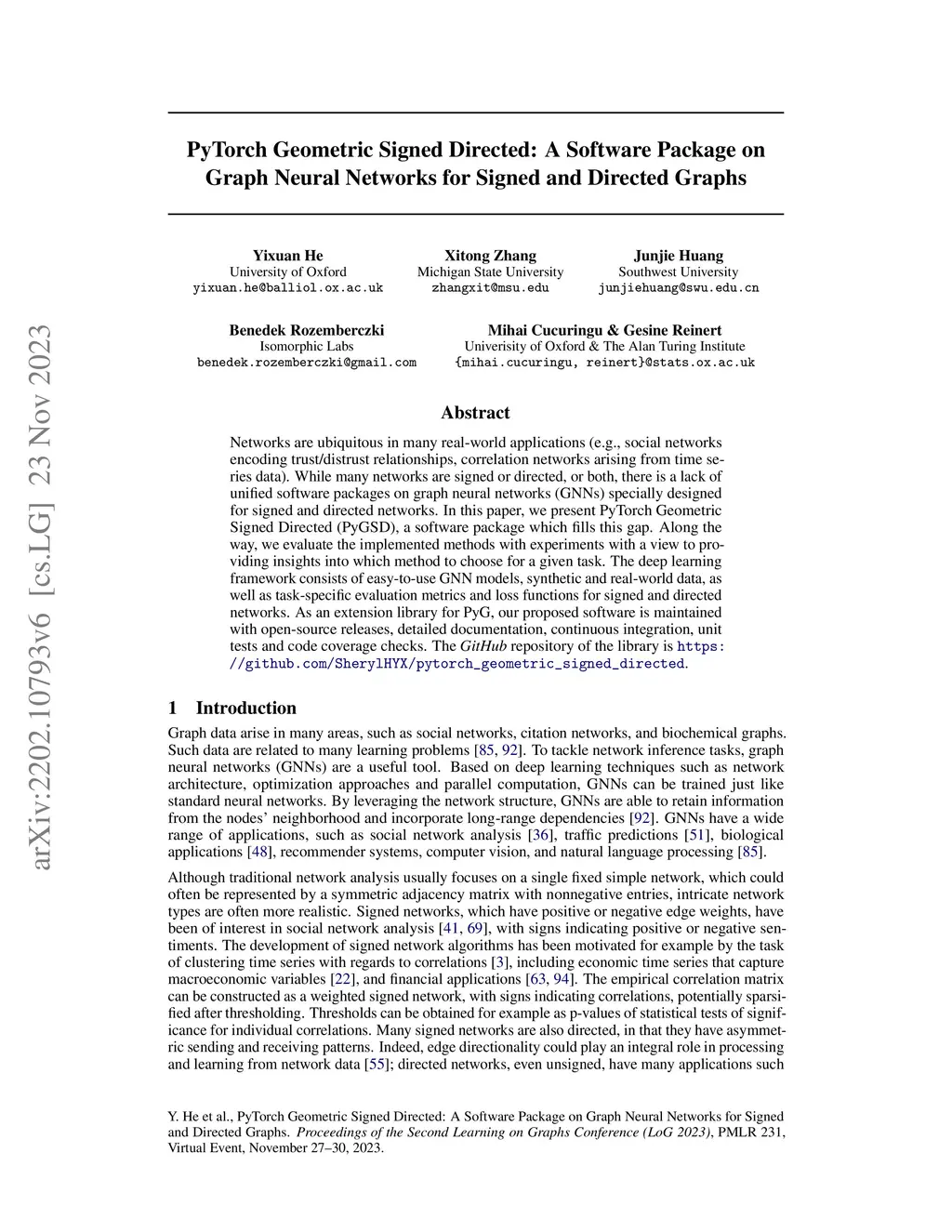 PyTorch Geometric Signed Directed: A Survey and Software on Graph Neural