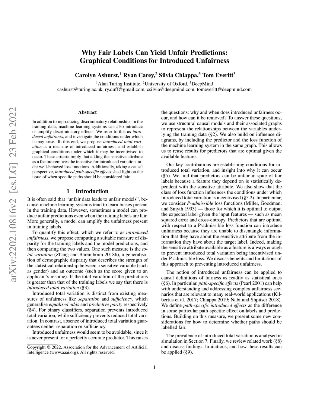 In addition to reproducing discriminatory relationships in the training data, machine learning systems can also introduce or amplify discriminatory effects. We refer to this as introduced unfairness, and investigate the conditions under which it may arise. To this end, we propose introduced total variation as a measure of introduced unfairness, and establish graphical conditions under which it may be incentivised to occur. These criteria imply that adding the sensitive attribute as a feature removes the incentive for introduced variation under well-behaved loss functions. Additionally, taking a causal perspective, introduced path-specific effects shed light on the issue of when specific paths should be considered fair.