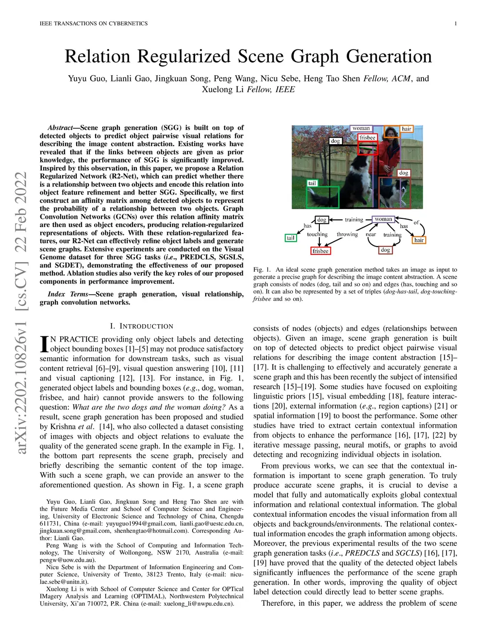 Scene graph generation (SGG) is built on top of detected objects to predict object pairwise visual relations for describing the image content abstraction. Existing works have revealed that if the links between objects are given as prior knowledge, the performance of SGG is significantly improved. Inspired by this observation, in this article, we propose a relation regularized network (R2-Net), which can predict whether there is a relationship between two objects and encode this relation into object feature refinement and better SGG. Specifically, we first construct an affinity matrix among detected objects to represent the probability of a relationship between two objects. Graph convolution networks (GCNs) over this relation affinity matrix are then used as object encoders, producing relation-regularized representations of objects. With these relation-regularized features, our R2-Net can effectively refine object labels and generate scene graphs. Extensive experiments are conducted on the visual genome dataset for three SGG tasks (i.e., predicate classification, scene graph classification, and scene graph detection), demonstrating the effectiveness of our proposed method. Ablation studies also verify the key roles of our proposed components in performance improvement.