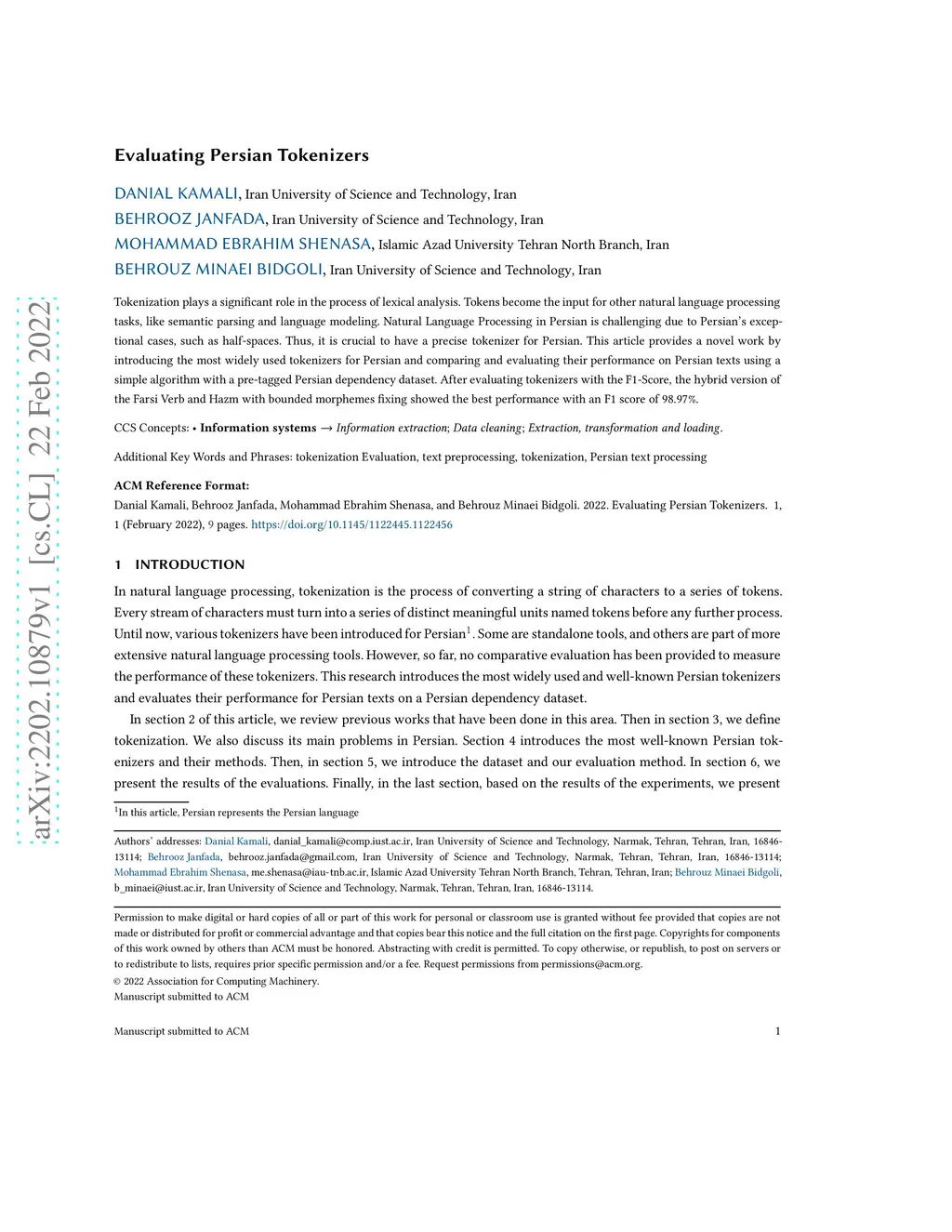 Tokenization plays a significant role in the process of lexical analysis. Tokens become the input for other natural language processing tasks, like semantic parsing and language modeling. Natural Language Processing in Persian is challenging due to Persian's exceptional cases, such as half-spaces. Thus, it is crucial to have a precise tokenizer for Persian. This article provides a novel work by introducing the most widely used tokenizers for Persian and comparing and evaluating their performance on Persian texts using a simple algorithm with a pre-tagged Persian dependency dataset. After evaluating tokenizers with the F1-Score, the hybrid version of the Farsi Verb and Hazm with bounded morphemes fixing showed the best performance with an F1 score of 98.97%.