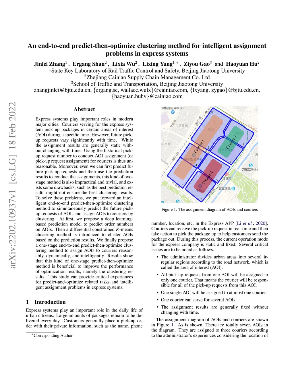 Express systems play important roles in modern major cities. Couriers serving for the express system pick up packages in certain areas of interest (AOI) during a specific time. However, future pick-up requests vary significantly with time. While the assignment results are generally static without changing with time. Using the historical pick-up request number to conduct AOI assignment (or pick-up request assignment) for couriers is thus unreasonable. Moreover, even we can first predict future pick-up requests and then use the prediction results to conduct the assignments, this kind of two-stage method is also impractical and trivial, and exists some drawbacks, such as the best prediction results might not ensure the best clustering results. To solve these problems, we put forward an intelligent end-to-end predict-then-optimize clustering method to simultaneously predict the future pick-up requests of AOIs and assign AOIs to couriers by clustering. At first, we propose a deep learning-based prediction model to predict order numbers on AOIs. Then a differential constrained K-means clustering method is introduced to cluster AOIs based on the prediction results. We finally propose a one-stage end-to-end predict-then-optimize clustering method to assign AOIs to couriers reasonably, dynamically, and intelligently. Results show that this kind of one-stage predict-then-optimize method is beneficial to improve the performance of optimization results, namely the clustering results. This study can provide critical experiences for predict-and-optimize related tasks and intelligent assignment problems in express systems.