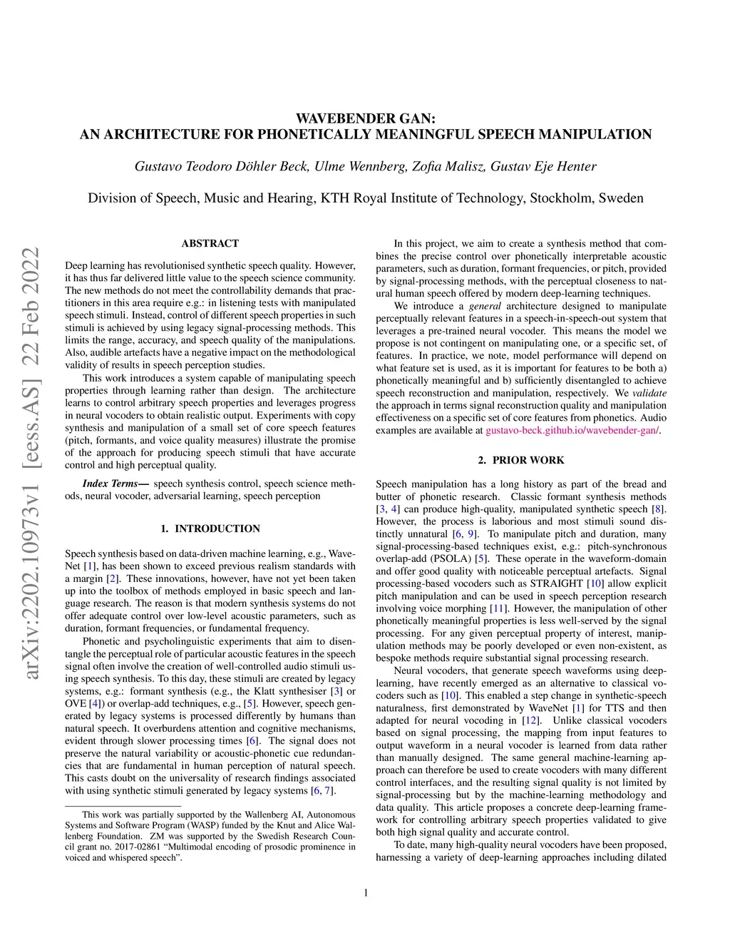 Wavebender GAN: An architecture for phonetically meaningful speech