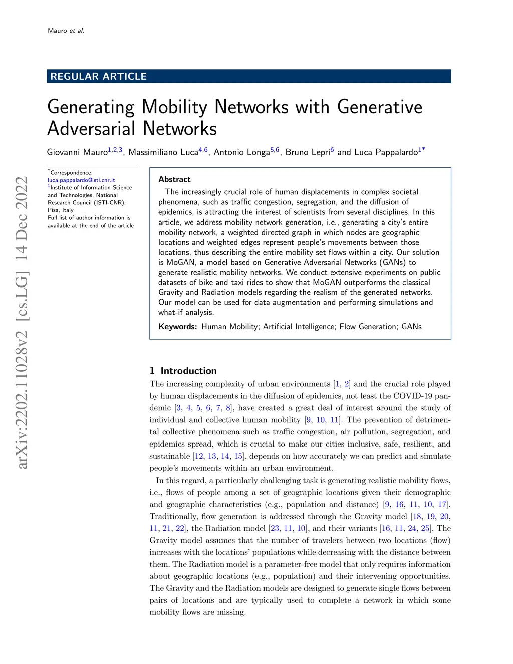 The increasingly crucial role of human displacements in complex societal phenomena, such as traffic congestion, segregation, and the diffusion of epidemics, is attracting the interest of scientists from several disciplines. In this article, we address mobility network generation, i.e., generating a city's entire mobility network, a weighted directed graph in which nodes are geographic locations and weighted edges represent people's movements between those locations, thus describing the entire mobility set flows within a city. Our solution is MoGAN, a model based on Generative Adversarial Networks (GANs) to generate realistic mobility networks. We conduct extensive experiments on public datasets of bike and taxi rides to show that MoGAN outperforms the classical Gravity and Radiation models regarding the realism of the generated networks. Our model can be used for data augmentation and performing simulations and what-if analysis.