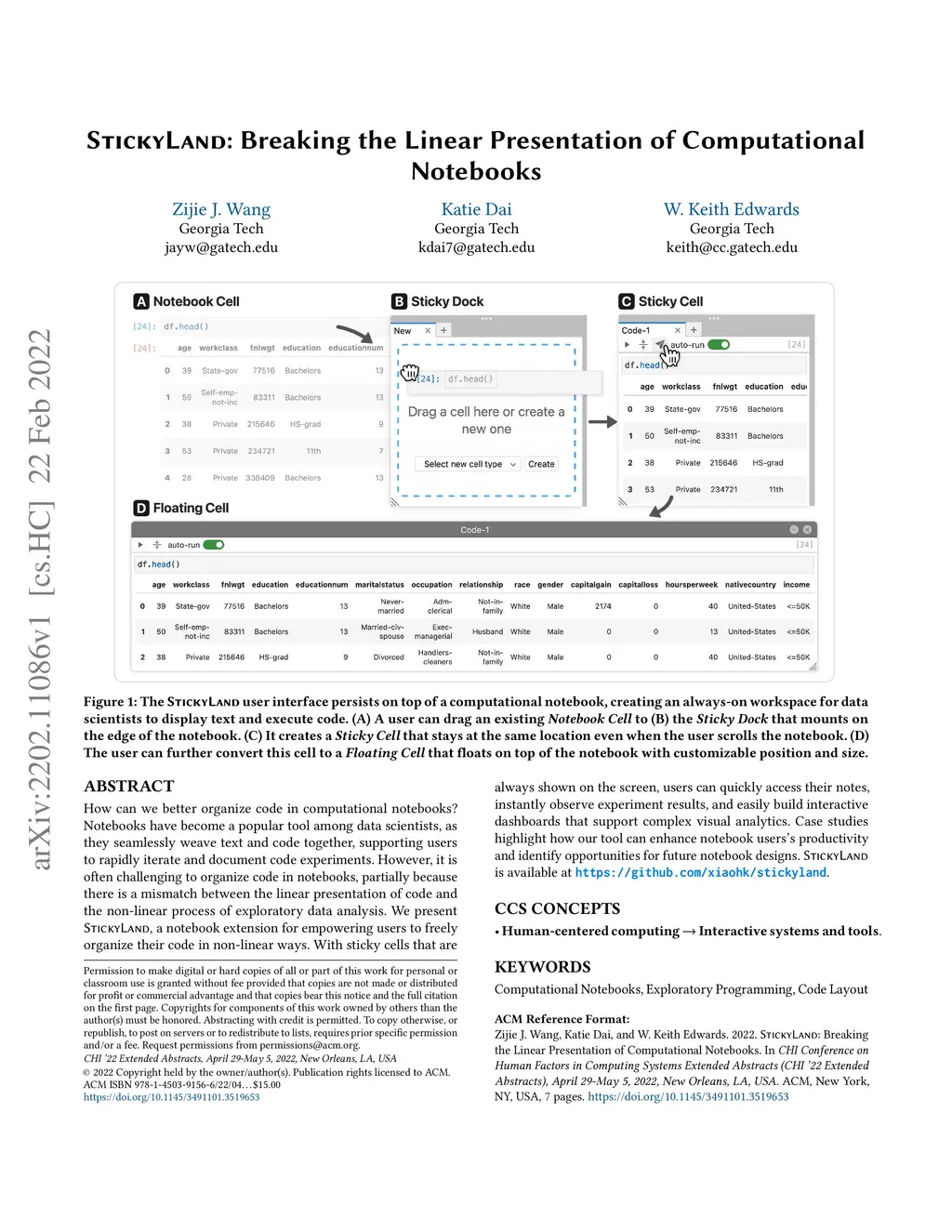 StickyLand: Breaking the Linear Presentation of Computational Notebooks