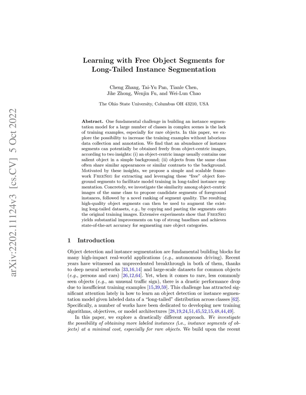 Learning with Free Object Segments for Long-Tailed Instance Segmentation