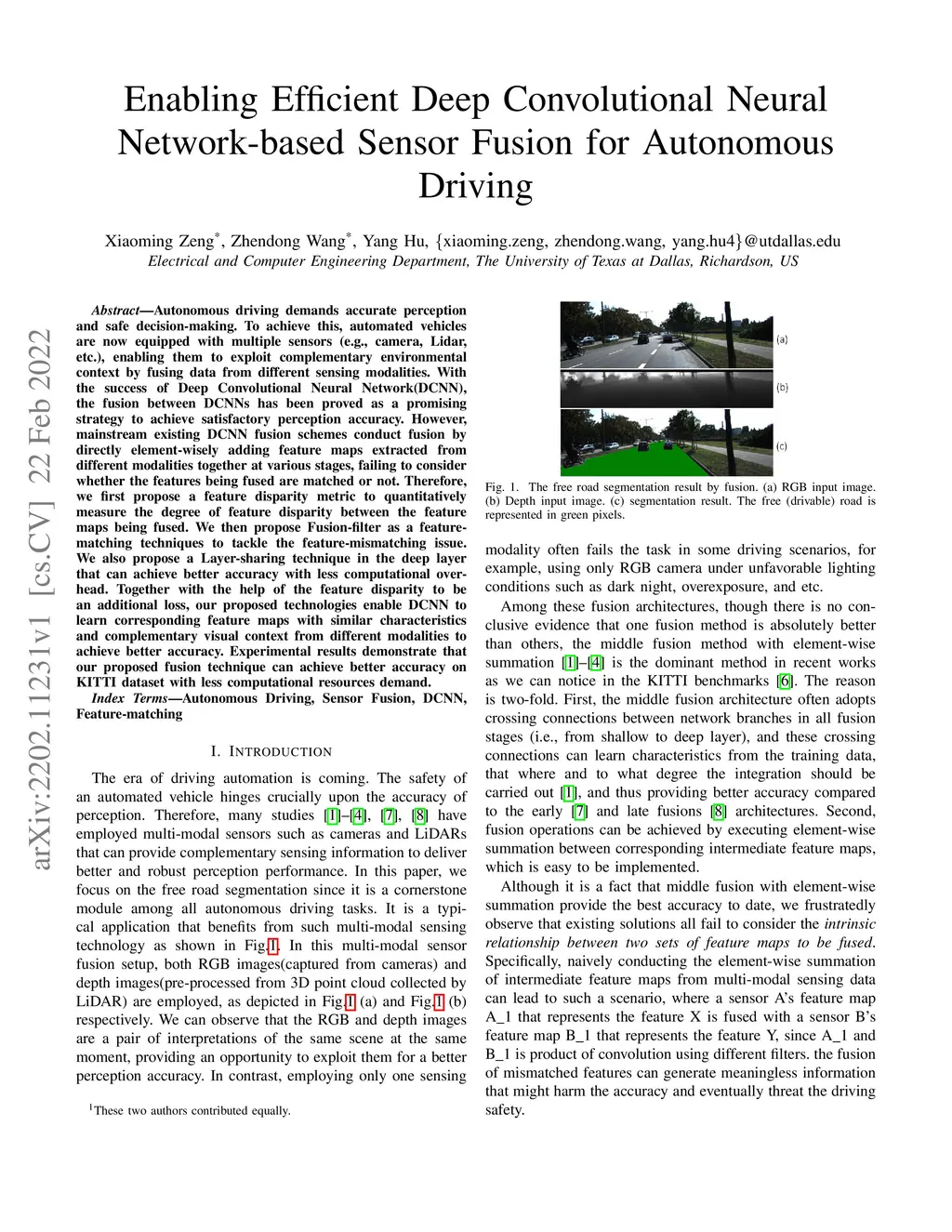 Autonomous driving demands accurate perception and safe decision-making. To achieve this, automated vehicles are now equipped with multiple sensors (e.g., camera, Lidar, etc.), enabling them to exploit complementary environmental context by fusing data from different sensing modalities. With the success of Deep Convolutional Neural Network(DCNN), the fusion between DCNNs has been proved as a promising strategy to achieve satisfactory perception accuracy. However, mainstream existing DCNN fusion schemes conduct fusion by directly element-wisely adding feature maps extracted from different modalities together at various stages, failing to consider whether the features being fused are matched or not. Therefore, we first propose a feature disparity metric to quantitatively measure the degree of feature disparity between the feature maps being fused. We then propose Fusion-filter as a feature-matching techniques to tackle the feature-mismatching issue. We also propose a Layer-sharing technique in the deep layer that can achieve better accuracy with less computational overhead. Together with the help of the feature disparity to be an additional loss, our proposed technologies enable DCNN to learn corresponding feature maps with similar characteristics and complementary visual context from different modalities to achieve better accuracy. Experimental results demonstrate that our proposed fusion technique can achieve better accuracy on KITTI dataset with less computational resources demand.