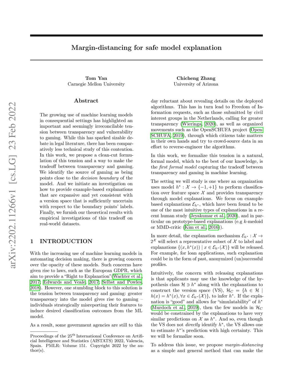 Margin-distancing for safe model explanation