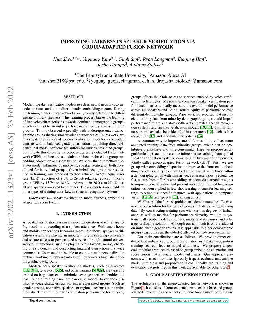 Improving fairness in speaker verification via Group-adapted Fusion