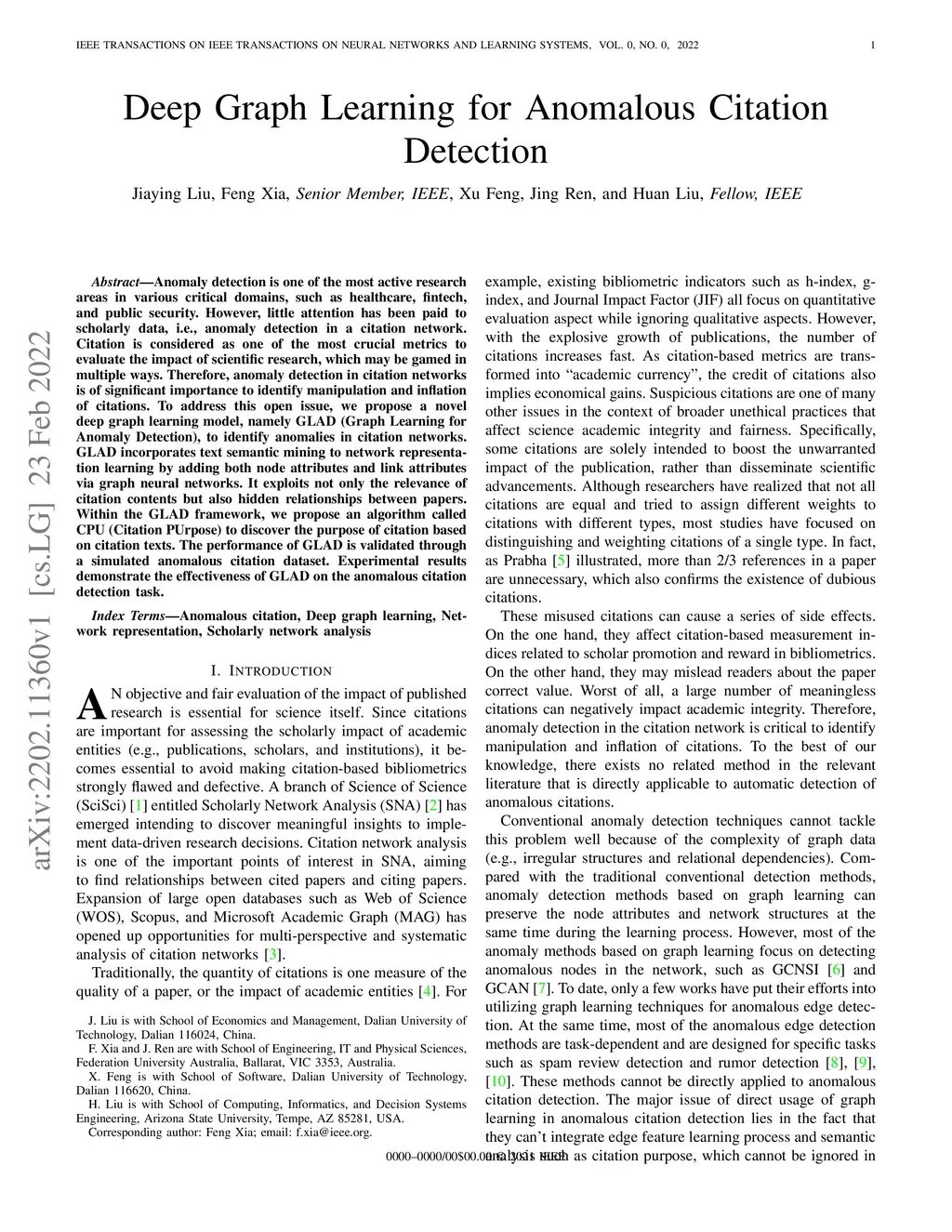 Deep Graph Learning for Anomalous Citation Detection