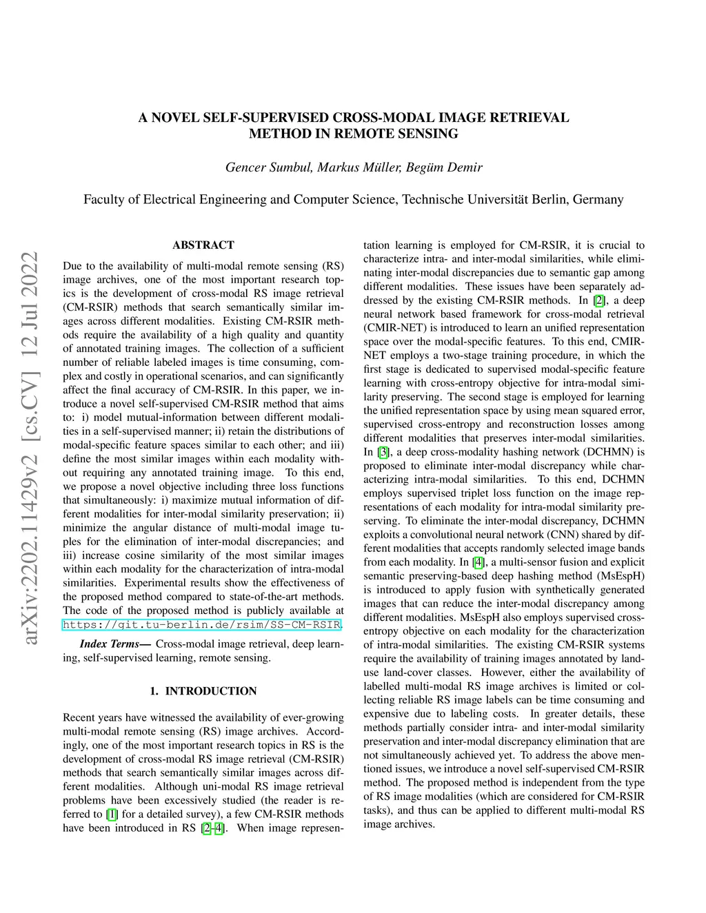 A Novel Self-Supervised Cross-Modal Image Retrieval Method In Remote