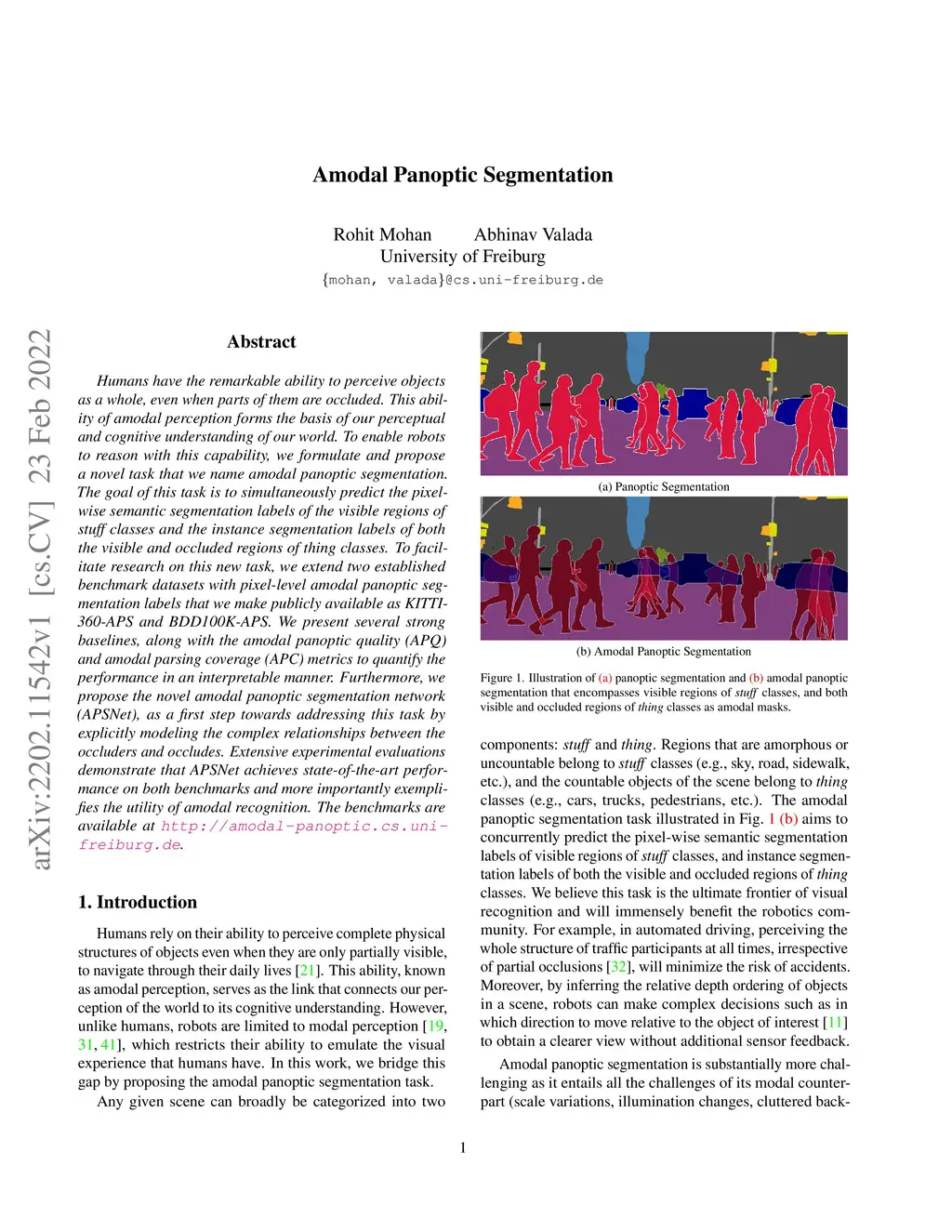 Humans have the remarkable ability to perceive objects as a whole, even when parts of them are occluded. This ability of amodal perception forms the basis of our perceptual and cognitive understanding of our world. To enable robots to reason with this capability, we formulate and propose a novel task that we name amodal panoptic segmentation. The goal of this task is to simultaneously predict the pixel-wise semantic segmentation labels of the visible regions of stuff classes and the instance segmentation labels of both the visible and occluded regions of thing classes. To facilitate research on this new task, we extend two established benchmark datasets with pixel-level amodal panoptic segmentation labels that we make publicly available as KITTI-360-APS and BDD100K-APS. We present several strong baselines, along with the amodal panoptic quality (APQ) and amodal parsing coverage (APC) metrics to quantify the performance in an interpretable manner. Furthermore, we propose the novel amodal panoptic segmentation network (APSNet), as a first step towards addressing this task by explicitly modeling the complex relationships between the occluders and occludes. Extensive experimental evaluations demonstrate that APSNet achieves state-of-the-art performance on both benchmarks and more importantly exemplifies the utility of amodal recognition. The benchmarks are available at http://amodal-panoptic.cs.uni-freiburg.de.
