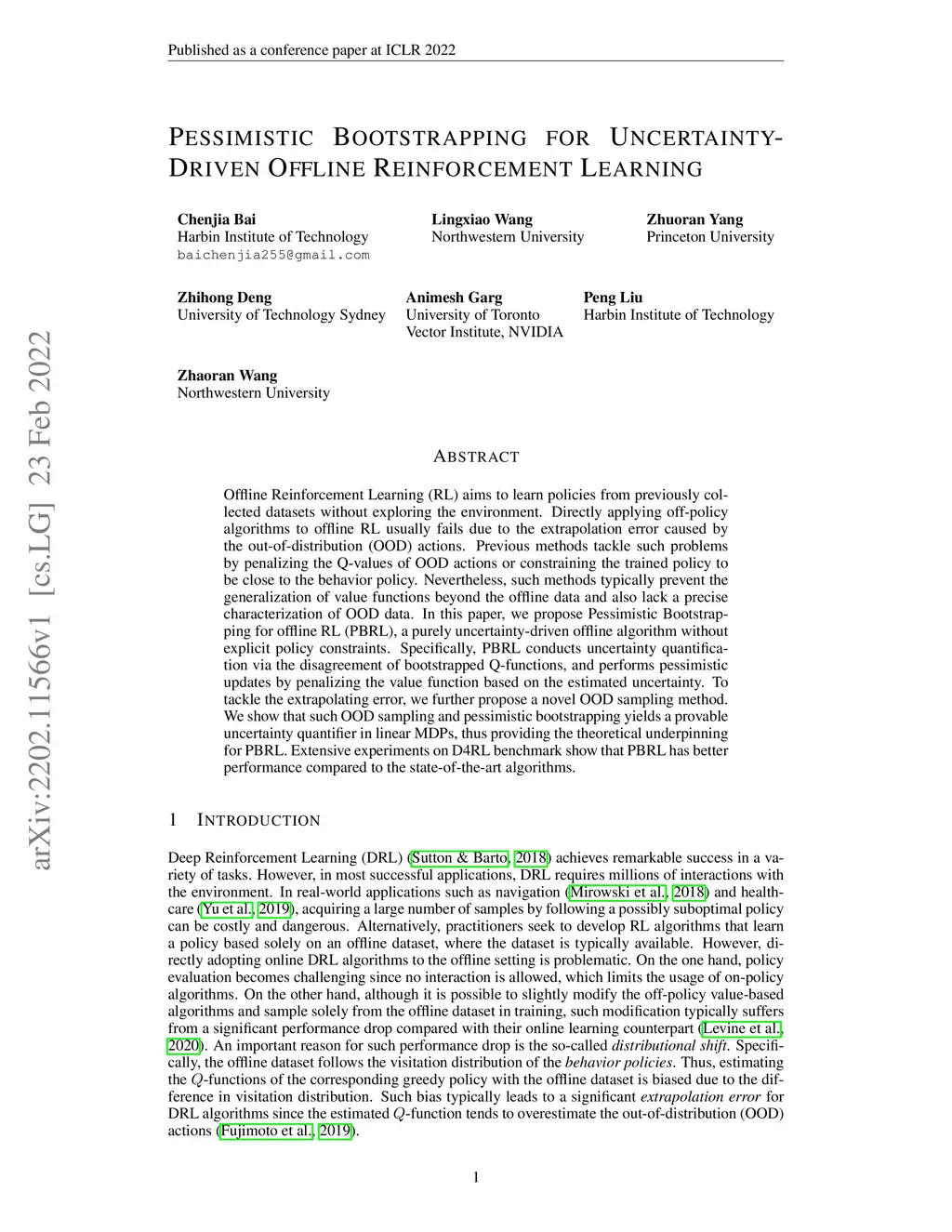 Pessimistic Bootstrapping for Uncertainty-Driven Offline Reinforcement