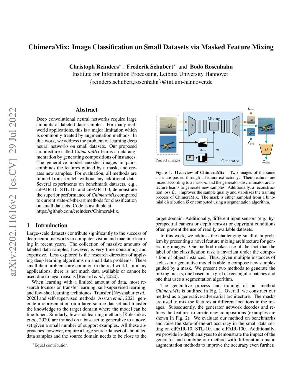 ChimeraMix: Image Classification on Small Datasets via Masked Feature