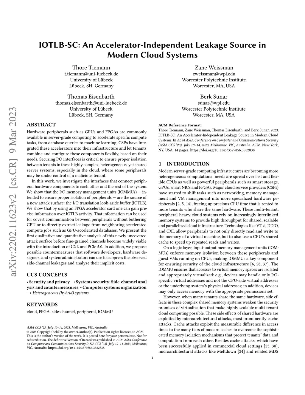 IOTLB-SC: An Accelerator-Independent Leakage Source in Modern Cloud