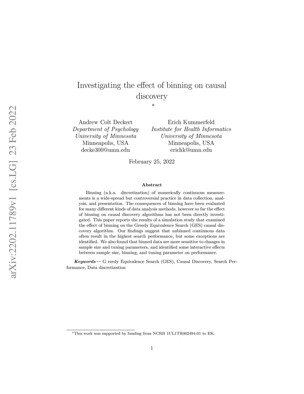 Investigating the effect of binning on causal discovery