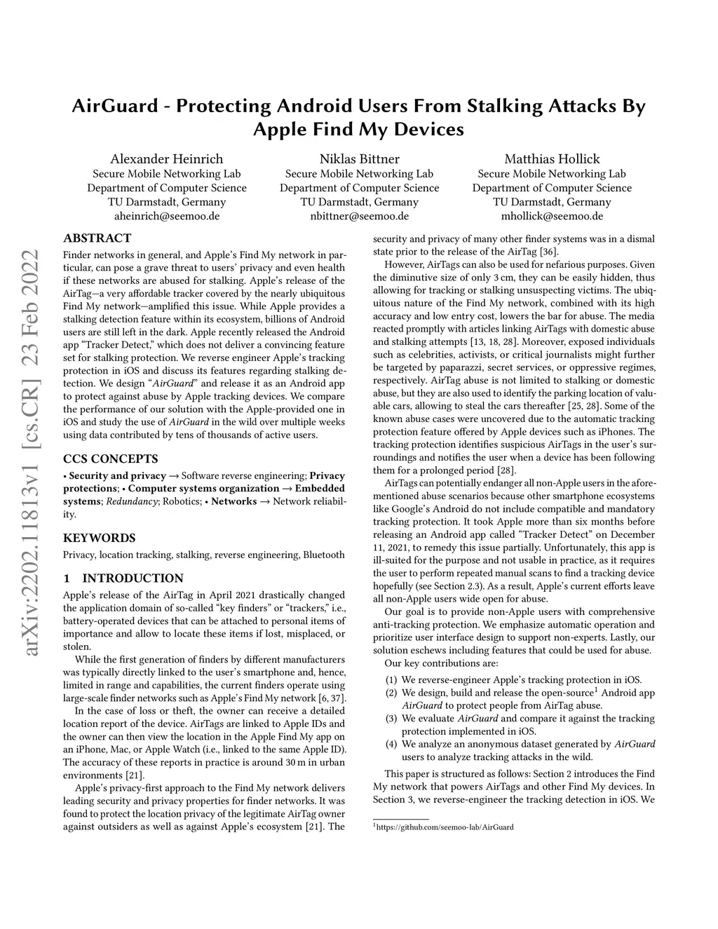 AirGuard -- Protecting Android Users From Stalking Attacks By Apple Find