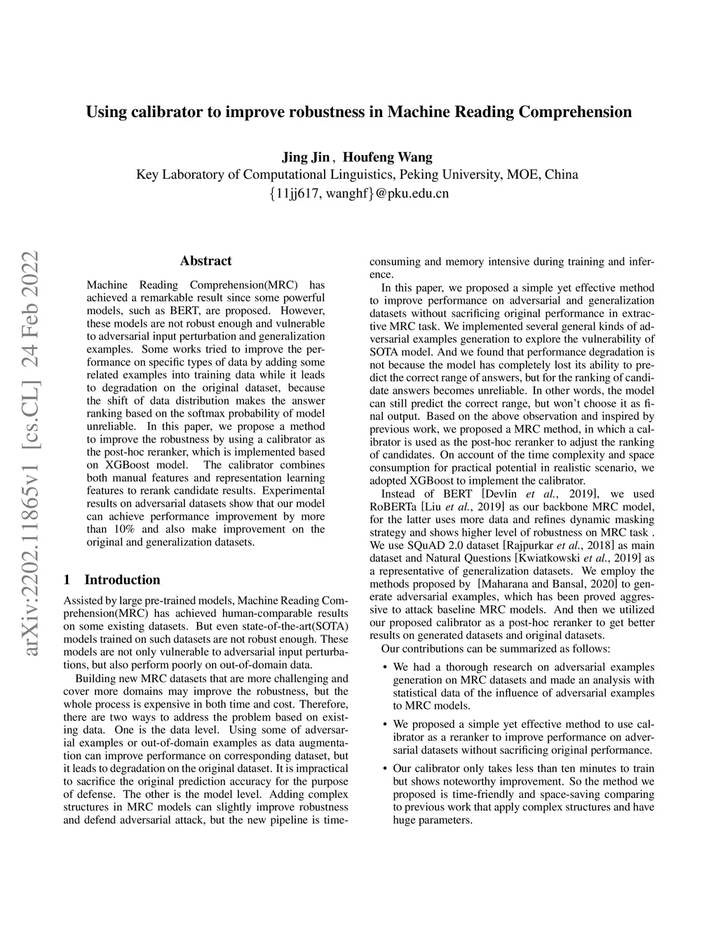 Using calibrator to improve robustness in Machine Reading Comprehension