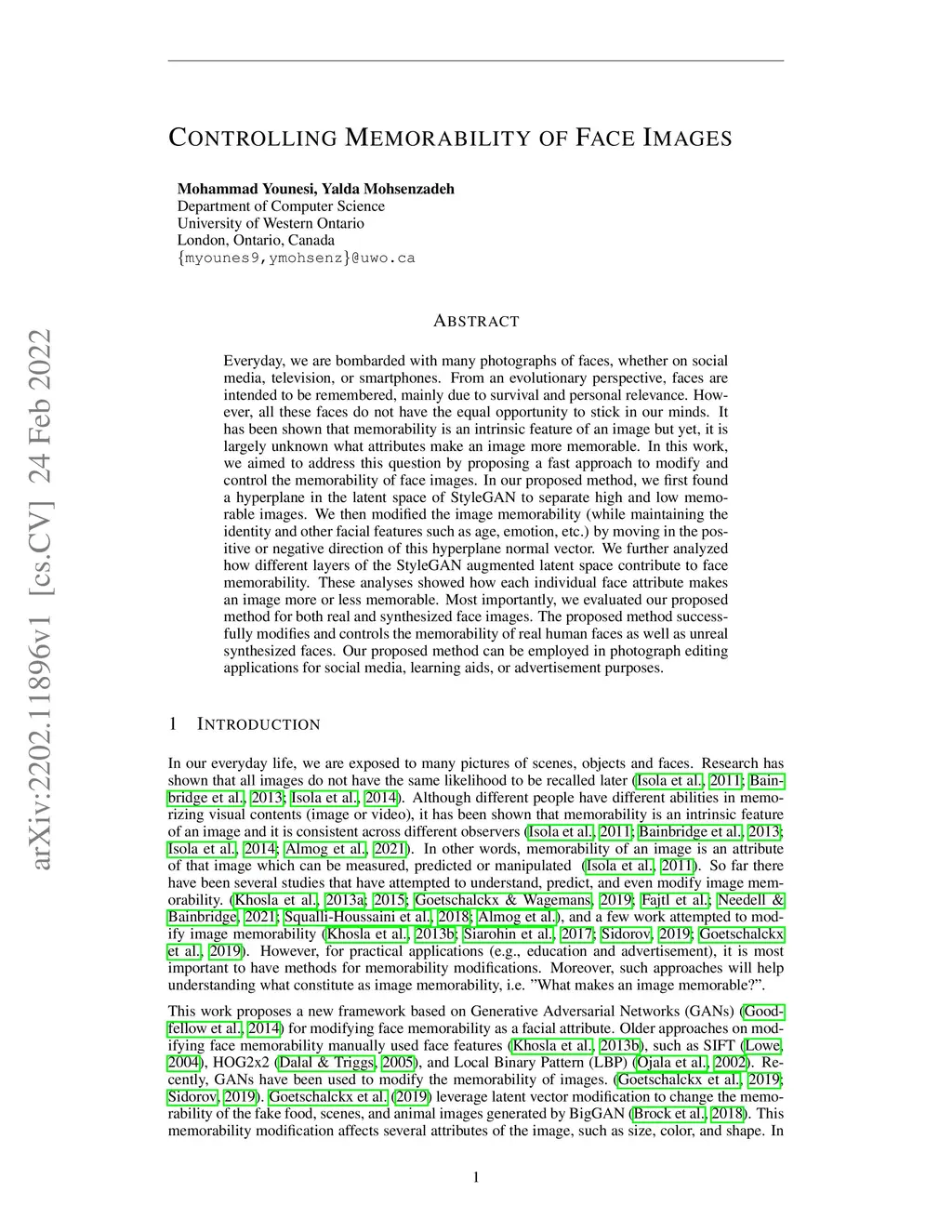 Everyday, we are bombarded with many photographs of faces, whether on social media, television, or smartphones. From an evolutionary perspective, faces are intended to be remembered, mainly due to survival and personal relevance. However, all these faces do not have the equal opportunity to stick in our minds. It has been shown that memorability is an intrinsic feature of an image but yet, it is largely unknown what attributes make an image more memorable. In this work, we aimed to address this question by proposing a fast approach to modify and control the memorability of face images. In our proposed method, we first found a hyperplane in the latent space of StyleGAN to separate high and low memorable images. We then modified the image memorability (while maintaining the identity and other facial features such as age, emotion, etc.) by moving in the positive or negative direction of this hyperplane normal vector. We further analyzed how different layers of the StyleGAN augmented latent space contribute to face memorability. These analyses showed how each individual face attribute makes an image more or less memorable. Most importantly, we evaluated our proposed method for both real and synthesized face images. The proposed method successfully modifies and controls the memorability of real human faces as well as unreal synthesized faces. Our proposed method can be employed in photograph editing applications for social media, learning aids, or advertisement purposes.