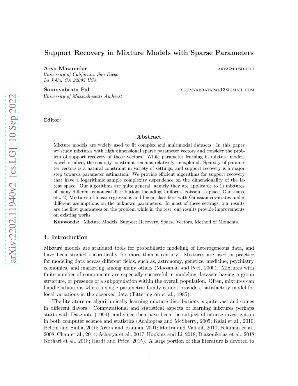 Support Recovery in Mixture Models with Sparse Parameters