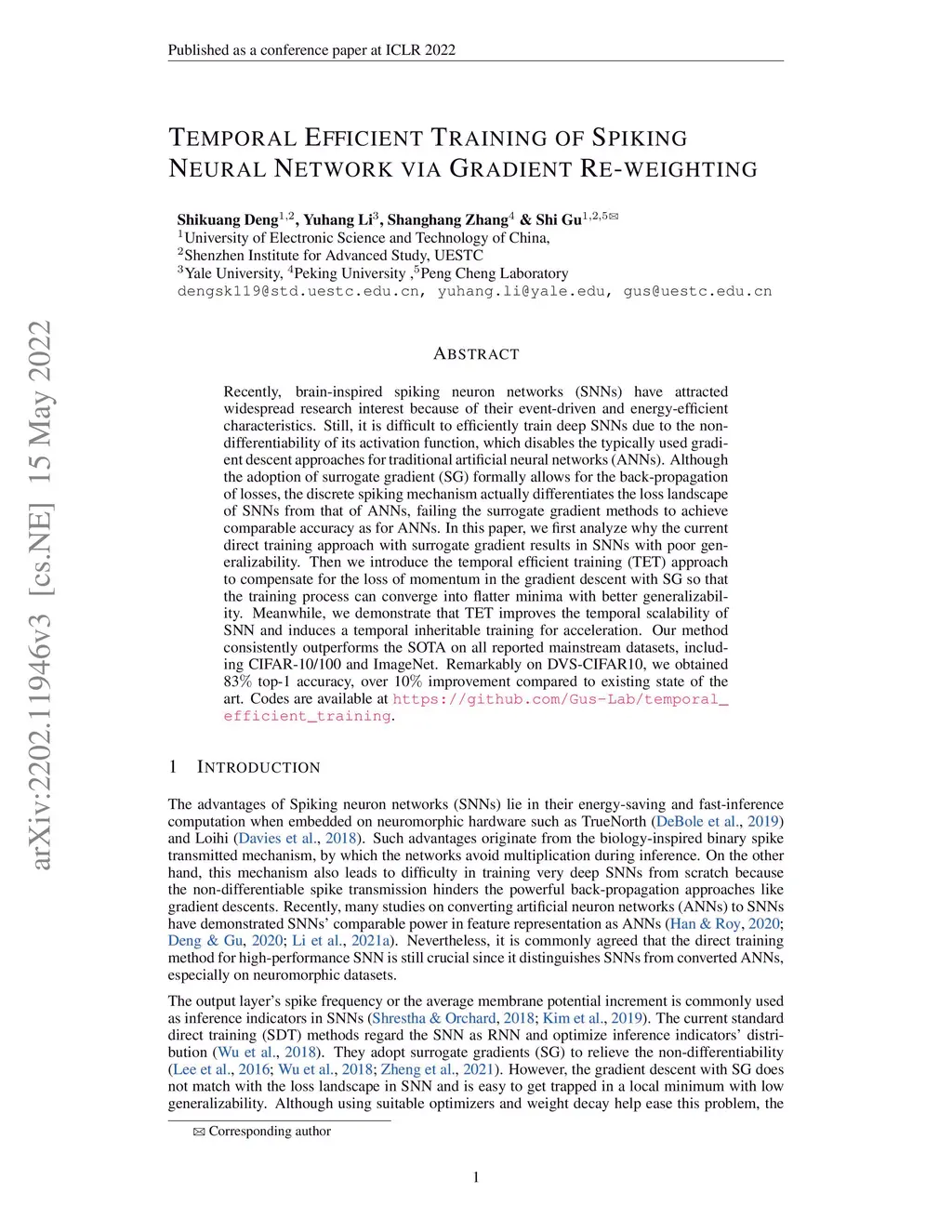 Temporal Efficient Training of Spiking Neural Network via Gradient Re-weighting