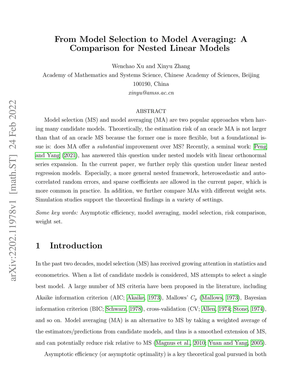 From Model Selection to Model Averaging: A Comparison for Nested Linear