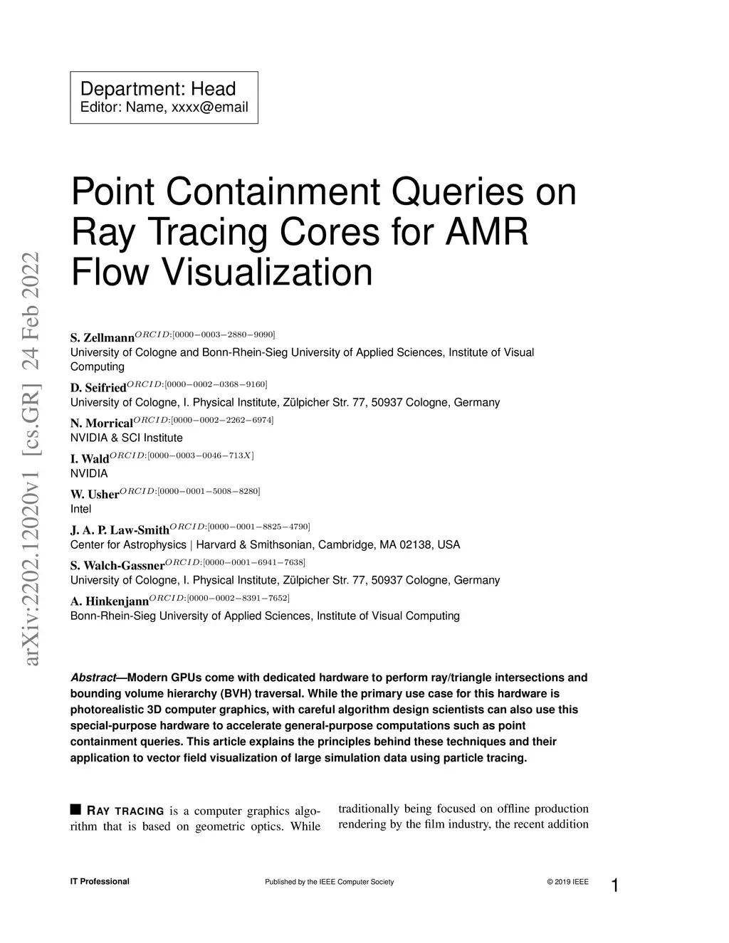 Modern GPUs come with dedicated hardware to perform ray/triangle intersections and bounding volume hierarchy (BVH) traversal. While the primary use case for this hardware is photorealistic 3D computer graphics, with careful algorithm design scientists can also use this special-purpose hardware to accelerate general-purpose computations such as point containment queries. This article explains the principles behind these techniques and their application to vector field visualization of large simulation data using particle tracing.
