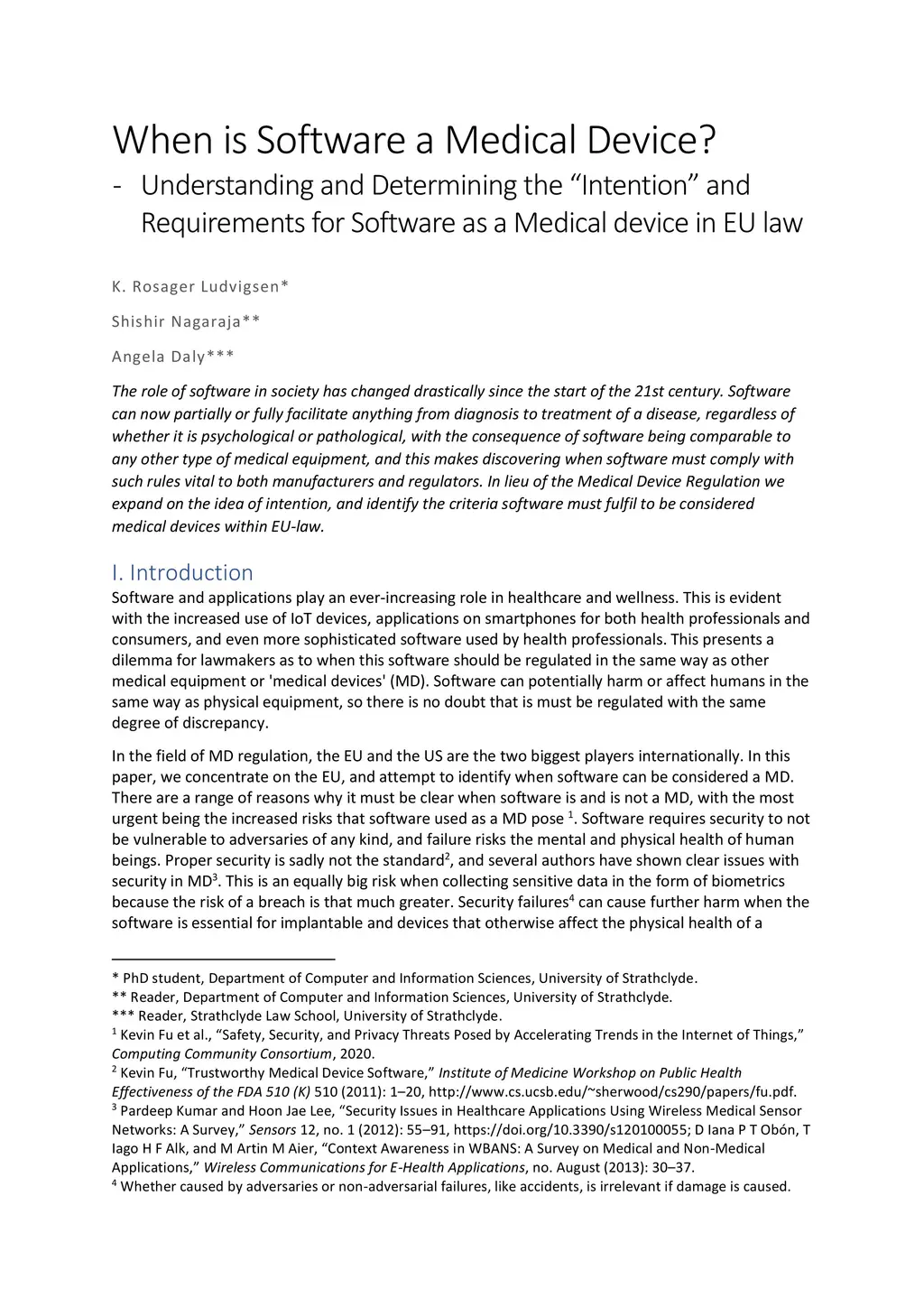 The role of software in society has changed drastically since the start of the 21st century. Software can now partially or fully facilitate anything from diagnosis to treatment of a disease, regardless of whether it is psychological or pathological, with the consequence of software being comparable to any other type of medical equipment, and this makes discovering when software must comply with such rules vital to both manufacturers and regulators. In lieu of the Medical Device Regulation we expand on the idea of intention, and identify the criteria software must fulfil to be considered medical devices within EU-law.