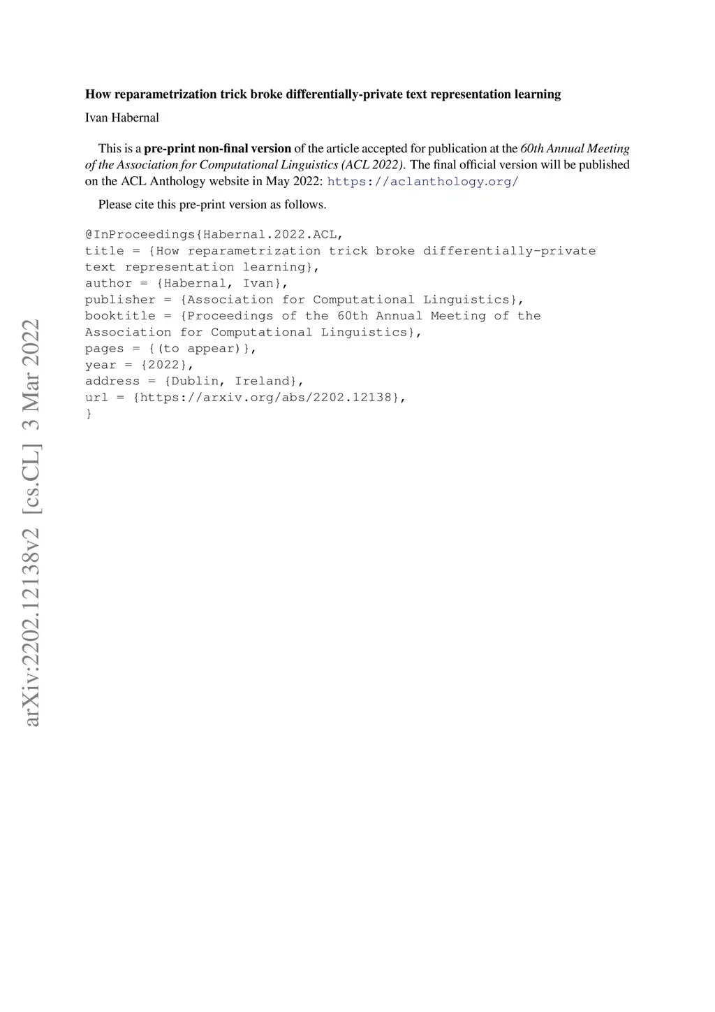 How reparametrization trick broke differentially-private text
