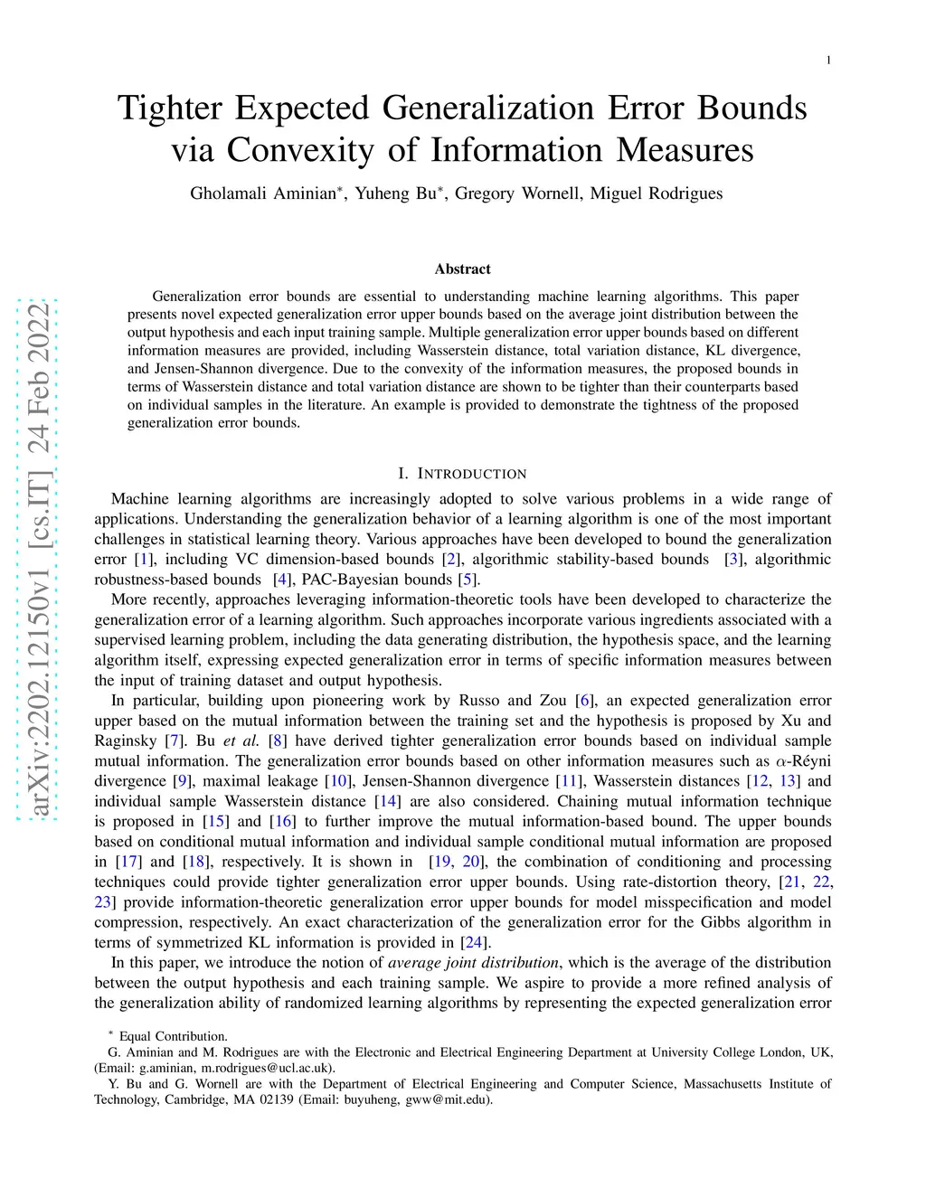 Generalization error bounds are essential to understanding machine learning algorithms. This paper presents novel expected generalization error upper bounds based on the average joint distribution between the output hypothesis and each input training sample. Multiple generalization error upper bounds based on different information measures are provided, including Wasserstein distance, total variation distance, KL divergence, and Jensen-Shannon divergence. Due to the convexity of the information measures, the proposed bounds in terms of Wasserstein distance and total variation distance are shown to be tighter than their counterparts based on individual samples in the literature. An example is provided to demonstrate the tightness of the proposed generalization error bounds.