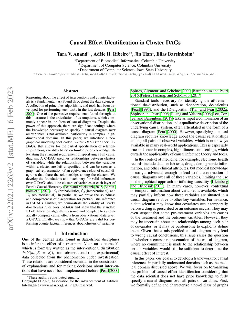 Reasoning about the effect of interventions and counterfactuals is a fundamental task found throughout the data sciences. A collection of principles, algorithms, and tools has been developed for performing such tasks in the last decades (Pearl, 2000). One of the pervasive requirements found throughout this literature is the articulation of assumptions, which commonly appear in the form of causal diagrams. Despite the power of this approach, there are significant settings where the knowledge necessary to specify a causal diagram over all variables is not available, particularly in complex, high-dimensional domains. In this paper, we introduce a new graphical modeling tool called cluster DAGs (for short, C-DAGs) that allows for the partial specification of relationships among variables based on limited prior knowledge, alleviating the stringent requirement of specifying a full causal diagram. A C-DAG specifies relationships between clusters of variables, while the relationships between the variables within a cluster are left unspecified, and can be seen as a graphical representation of an equivalence class of causal diagrams that share the relationships among the clusters. We develop the foundations and machinery for valid inferences over C-DAGs about the clusters of variables at each layer of Pearl's Causal Hierarchy (Pearl and Mackenzie 2018; Bareinboim et al. 2020) - L1 (probabilistic), L2 (interventional), and L3 (counterfactual). In particular, we prove the soundness and completeness of d-separation for probabilistic inference in C-DAGs. Further, we demonstrate the validity of Pearl's do-calculus rules over C-DAGs and show that the standard ID identification algorithm is sound and complete to systematically compute causal effects from observational data given a C-DAG. Finally, we show that C-DAGs are valid for performing counterfactual inferences about clusters of variables.