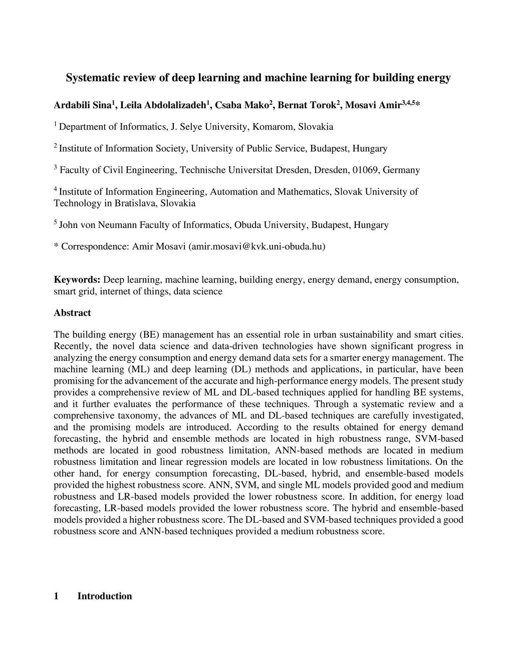 Systematic review of deep learning and machine learning for building