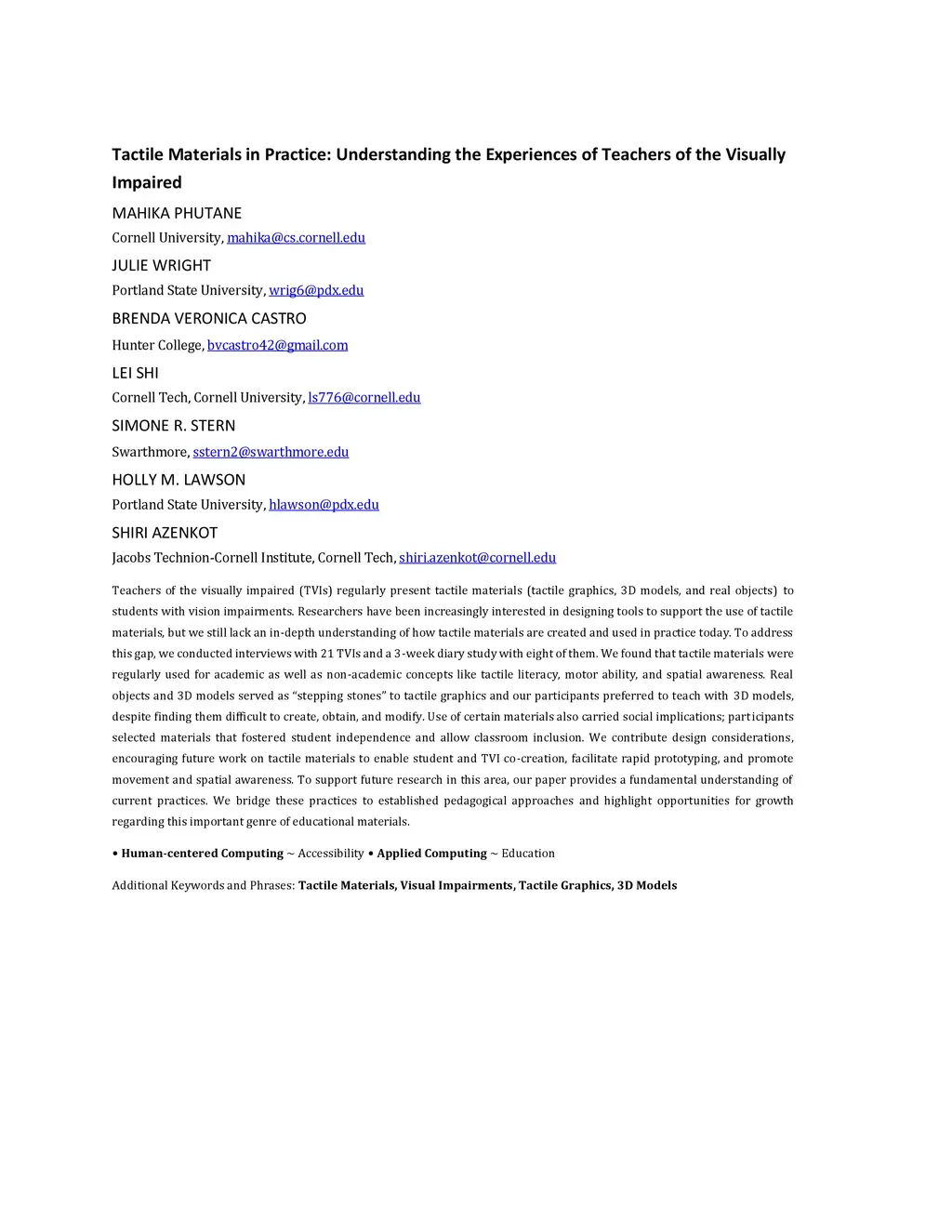 Tactile Materials in Practice: Understanding the Experiences of Teachers