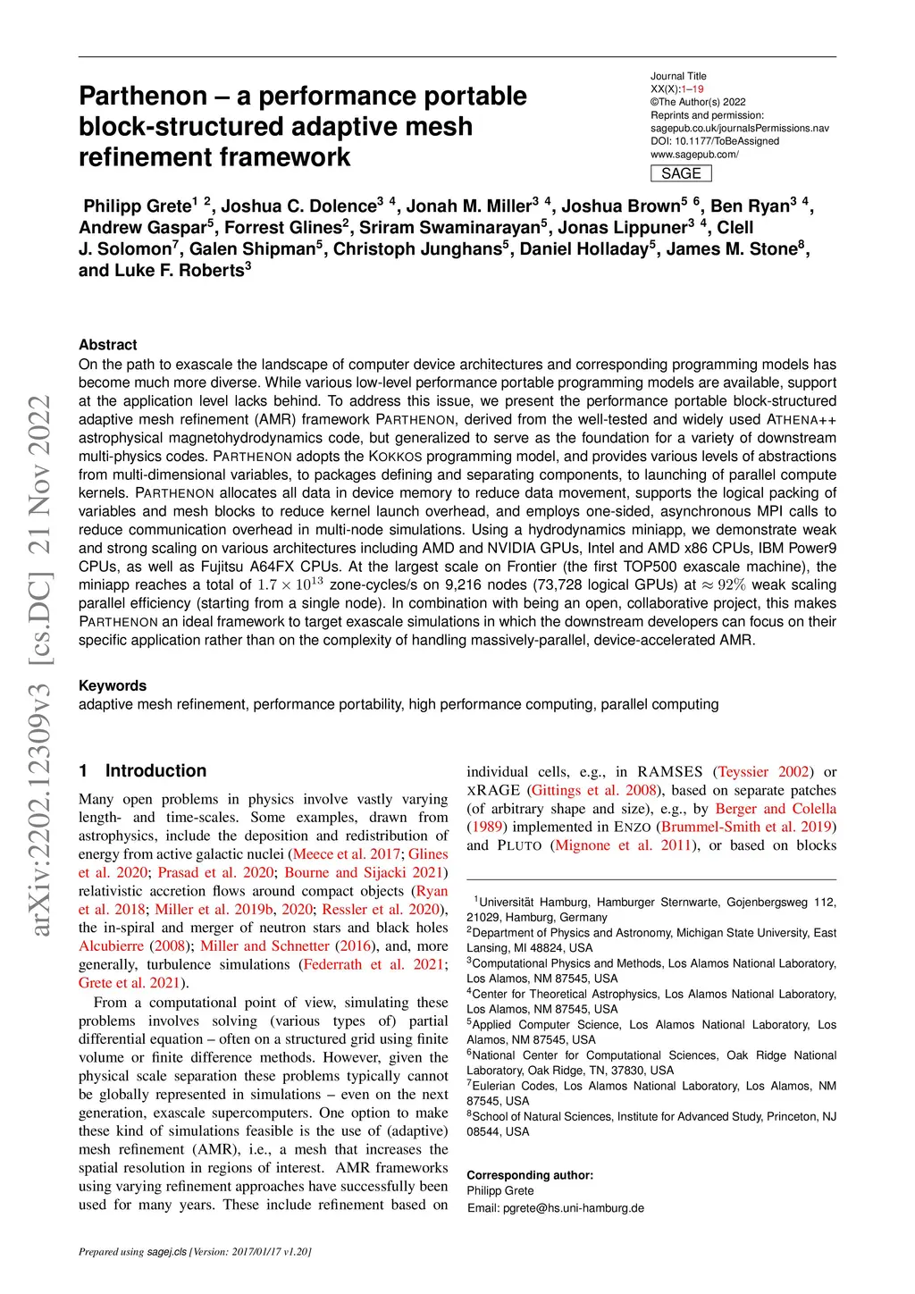 Parthenon -- a performance portable block-structured adaptive mesh