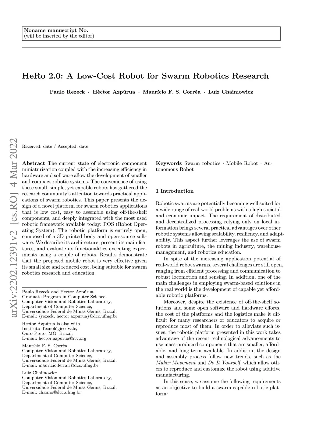 HeRo 2.0: A Low-Cost Robot for Swarm Robotics Research