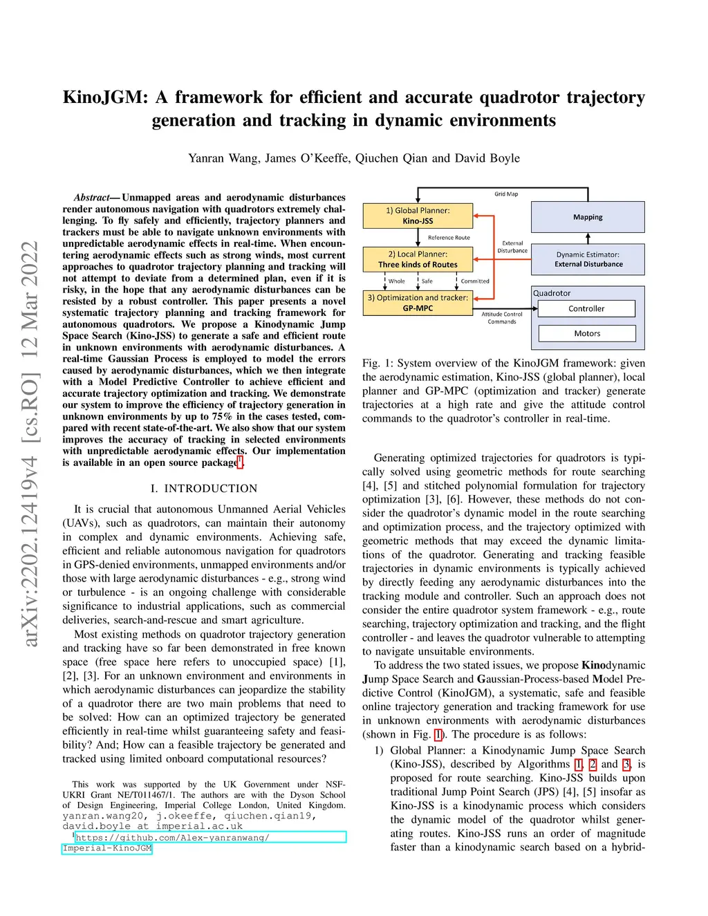 Unmapped areas and aerodynamic disturbances render autonomous navigation with quadrotors extremely challenging. To fly safely and efficiently, trajectory planners and trackers must be able to navigate unknown environments with unpredictable aerodynamic effects in real-time. When encountering aerodynamic effects such as strong winds, most current approaches to quadrotor trajectory planning and tracking will not attempt to deviate from a determined plan, even if it is risky, in the hope that any aerodynamic disturbances can be resisted by a robust controller. This paper presents a novel systematic trajectory planning and tracking framework for autonomous quadrotors. We propose a Kinodynamic Jump Space Search (Kino-JSS) to generate a safe and efficient route in unknown environments with aerodynamic disturbances. A real-time Gaussian Process is employed to model the effects of aerodynamic disturbances, which we then integrate with a Model Predictive Controller to achieve efficient and accurate trajectory optimization and tracking. We demonstrate our system to improve the efficiency of trajectory generation in unknown environments by up to 75\% in the cases tested, compared with recent state-of-the-art. We also demonstrate that our system improves the accuracy of tracking in selected environments with unpredictable aerodynamic effects.